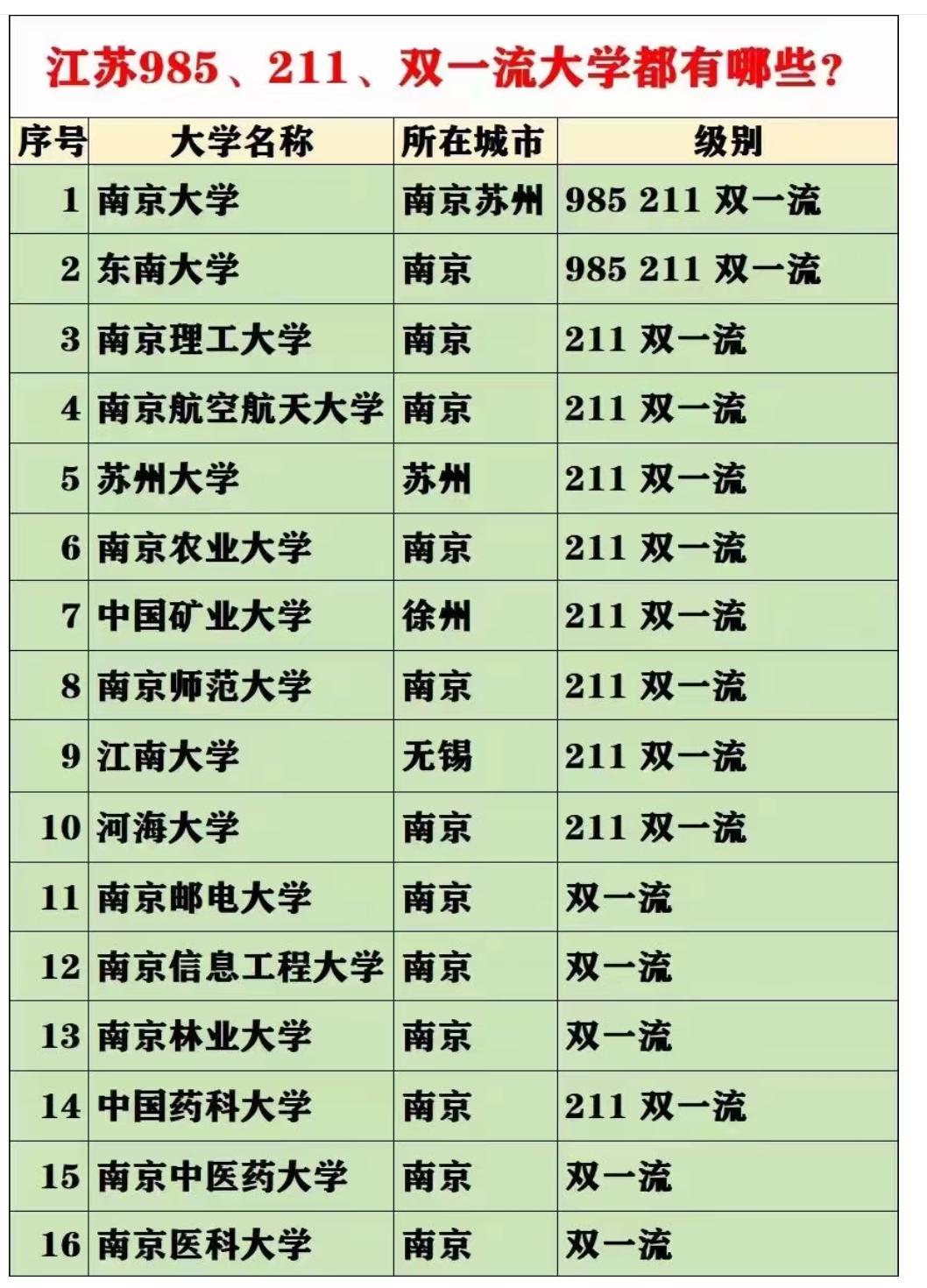 《江苏家长考生必看!16所985/211/双一流大学,藏着多少升学就业的“门道”》 江苏的教育有多卷?看看这16所985、211、双一流大学就懂了。每年高考报志愿,多少家庭对着这份名单熬红了眼——选对了,可能就握住了孩子未来的“起跑线”。今天咱们就掰开揉碎,聊聊这些学校到底强在哪,又该怎么选。 南大、东南:江苏高教的“定盘星” 南京大学和东南大学这对“双子星”,是江苏985的门面。南大的文科、理科是真·天花板,天文学、地质学全国顶尖,有家长说“孩子要是能进南大历史系,哪怕少玩三年游戏也值”。确实,南大的人文底蕴摆在那,毕业生深造、进科研单位,路子宽得很。 东南大学的工科更不用多说,建筑学、土木工程敢称第二,没人敢称第一。走在南京街头,不少地标建筑都烙着“东南设计”的印记。听说东南的工科生,还没毕业就被设计院、地产公司“盯”上了,就业根本不发愁。 211军团:行业“硬通货”,专精到骨子里 南京理工、南航这俩“国防七子”,在军工、航天圈是“神一样的存在”。南理工的兵器科学,南航的航空宇航,学科评估A+到手软。有位家长吐槽“孩子学了南航飞行器设计,天天泡在实验室,虽忙但说起‘为国家造飞机’,眼里有光”。 苏州大学靠着苏州的经济活力,硬是走出了“黑马”路线。材料科学、临床医学都是王牌,在长三角就业市场,苏大学生的认可度不比某些985差。有苏州企业HR说“苏大的学生动手能力强,和我们产业结合得紧,用着顺手”。 河海的水利、江南的食品、中国药大的药学,更是把“专精”刻进了DNA。河海的水利工程号称“亚洲第一”,毕业生进水利枢纽、设计院跟“串门”似的;江南大学的食品专业,蒙牛、伊利抢着要;中国药大的学子,在医药圈就是“金字招牌”。 双一流新贵:低调有实力,就业升学“王炸” 南京邮电、南京信息工程大学这些“双一流”黑马,硬是闯出了自己的天地。南邮的信息与通信工程,在华为、中兴眼里比某些985还香;南信工的大气科学,更是气象领域的“独一份”。有考生家长说“孩子读了南邮计算机,考研进了上海交大,导师直夸本科基础扎实”。 南京医科、南京中医药的医学类专业,在江苏医疗系统里是“香饽饽”。南京医科的临床医学,录取分年年“爆表”,医院HR直言“南医大的学生临床技能硬,上手快”;南京中医药的针灸、中药专业,在国内外都有大批拥趸。 这些学校散布在南京、苏州、无锡、徐州,地域特色也很鲜明。南京高校扎堆,学术氛围浓;苏州跟着产业走,就业机会多;无锡、徐州的学校专精一门,在当地认可度杠杠的。 选校时,冲985牌子还是选211/双一流王牌专业?优先城市发展还是学科实力?江苏家长考生的纠结,从来没停过。 最后想问问:要是你在江苏这些名校里选,会更看重学校牌子、专业实力,还是地域发展呢?江苏高校排名 南京双一流 江苏大学是几本 江苏高校排行榜 江苏大学专业 江苏双一流大学 江苏应用型高校