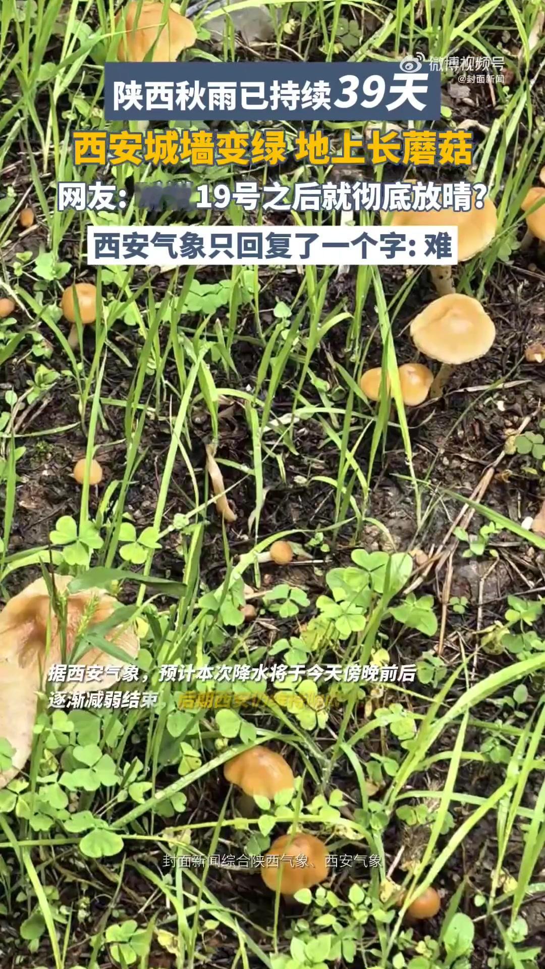 西安的雨停了,城墙长绿、街头冒菇,网友:长安变江南了! 10月13日,陕西西