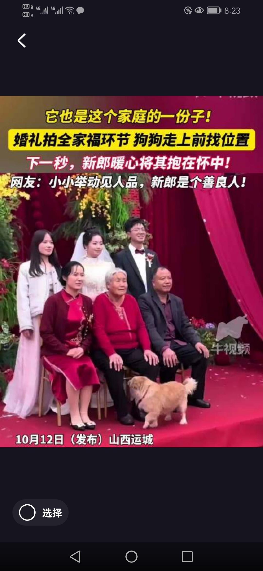 在婚礼全家福上,狗狗意外走红,成为焦点,究竟是怎样的场景让它如此吸睛? 近日,在山西运城举行的一场婚礼上,狗狗意外走红,成为全场焦点。婚礼拍摄全家福环节,狗狗突然走上前来寻找位置,新郎发现后,主动将狗狗抱入怀中一起入镜。这一温馨瞬间不仅温暖了现场宾客的心,也在社交媒体上引发了广泛关注。狗狗的可爱举动让不少网友感叹:“这才是真正的婚礼现场!”这一温馨时刻提醒我们,爱与陪伴不分物种,即使是宠物也能成为婚礼中的亮点。狗狗合照