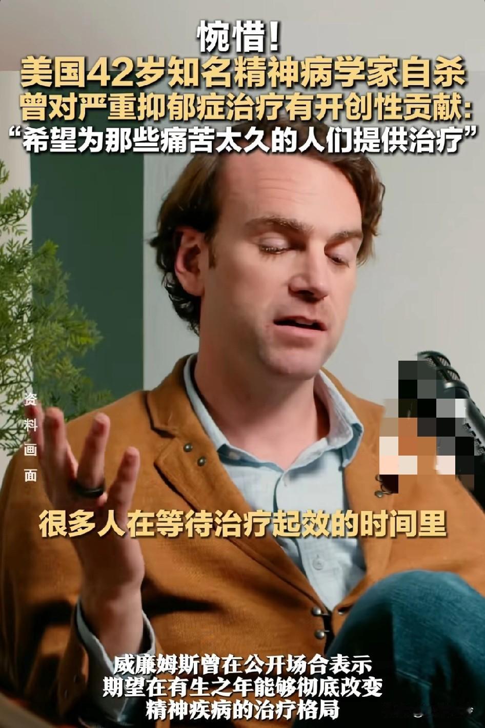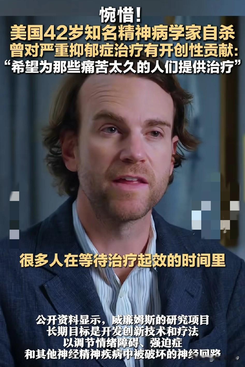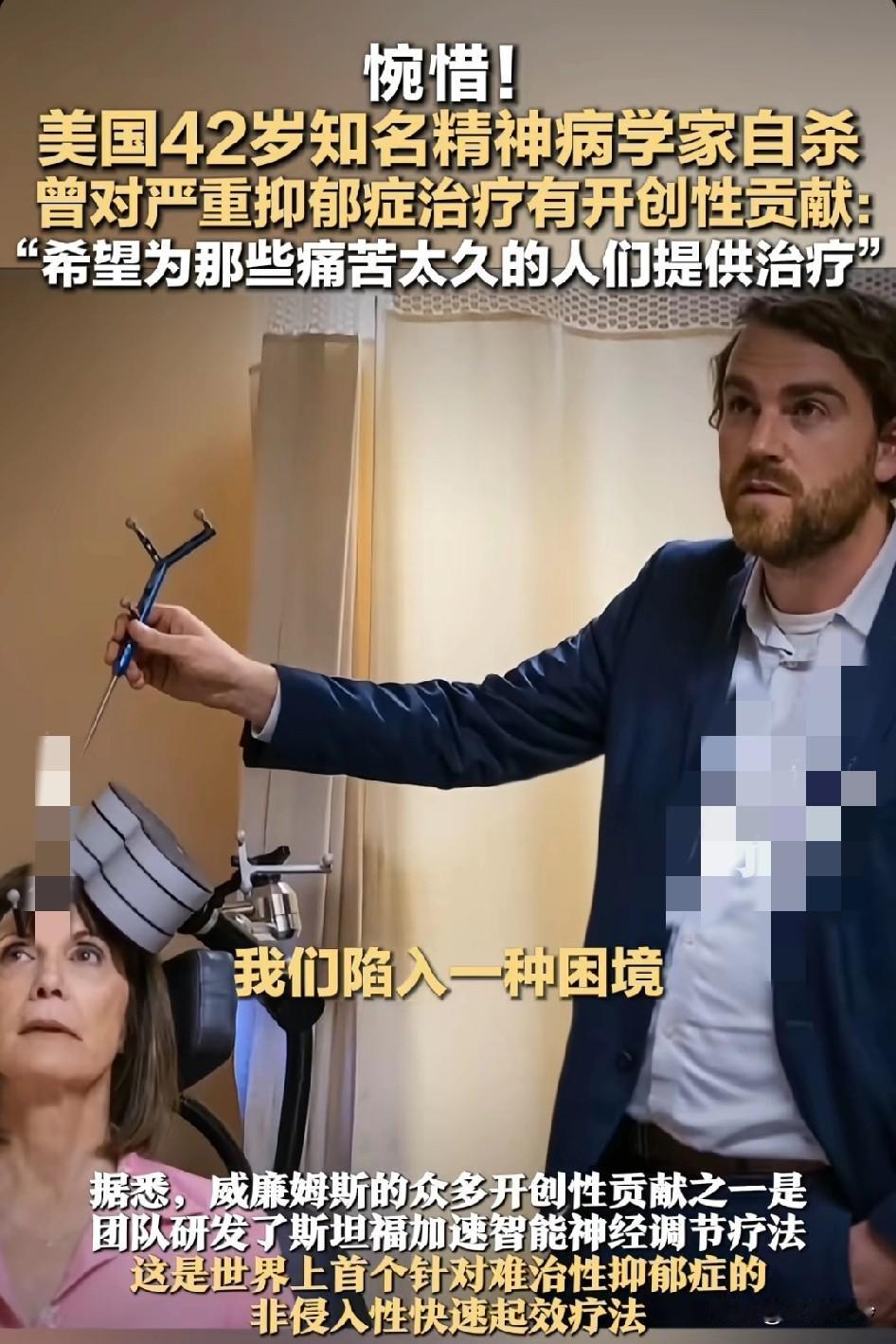 42岁美国知名精神病学家自杀! 曾对严重抑郁症治疗有开创性贡献,医学博士自杀身亡… 不要专注会困住你的东西,可以避免悲剧,人的肉体和精神都很脆弱。当一个人,一直接触负面的情绪久了,自己也就不好了… 自己还没有完全走出来的时候,是不适合去接触很多精神病患者的,因为有很多负能量共振,自己只爬到了半山腰,根本没有足够的能量抵抗风险!精神科医生从业时间不能太长,因为他们是人不是神,时间久了,他们也会出问题。这个职业是高危职业,因为这些病人的精神问题全部灌入了医生的脑中