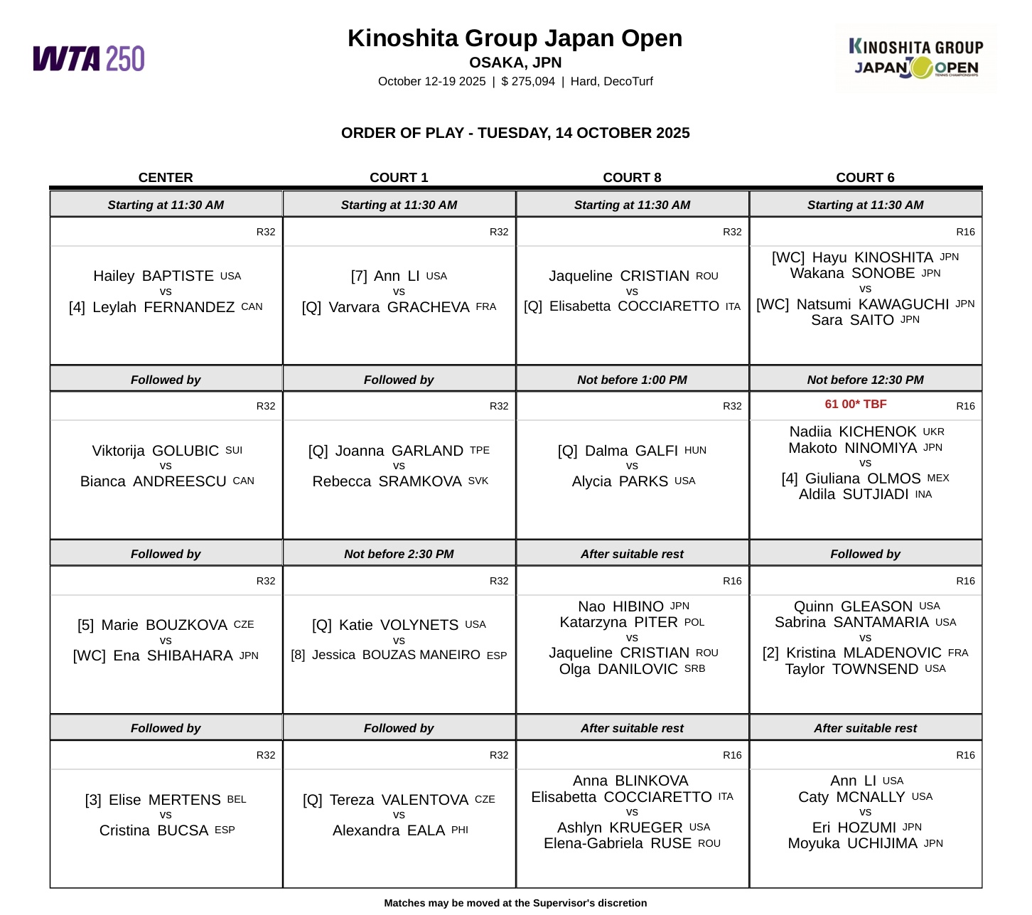随后 - [5]布兹科娃 vs [W]柴原瑛菜