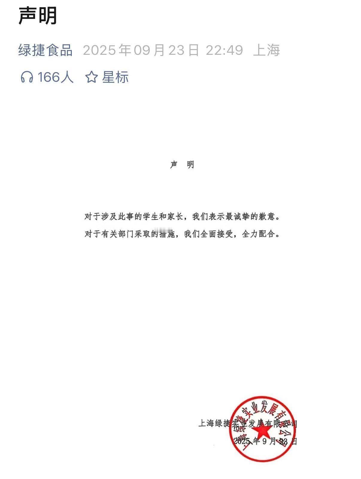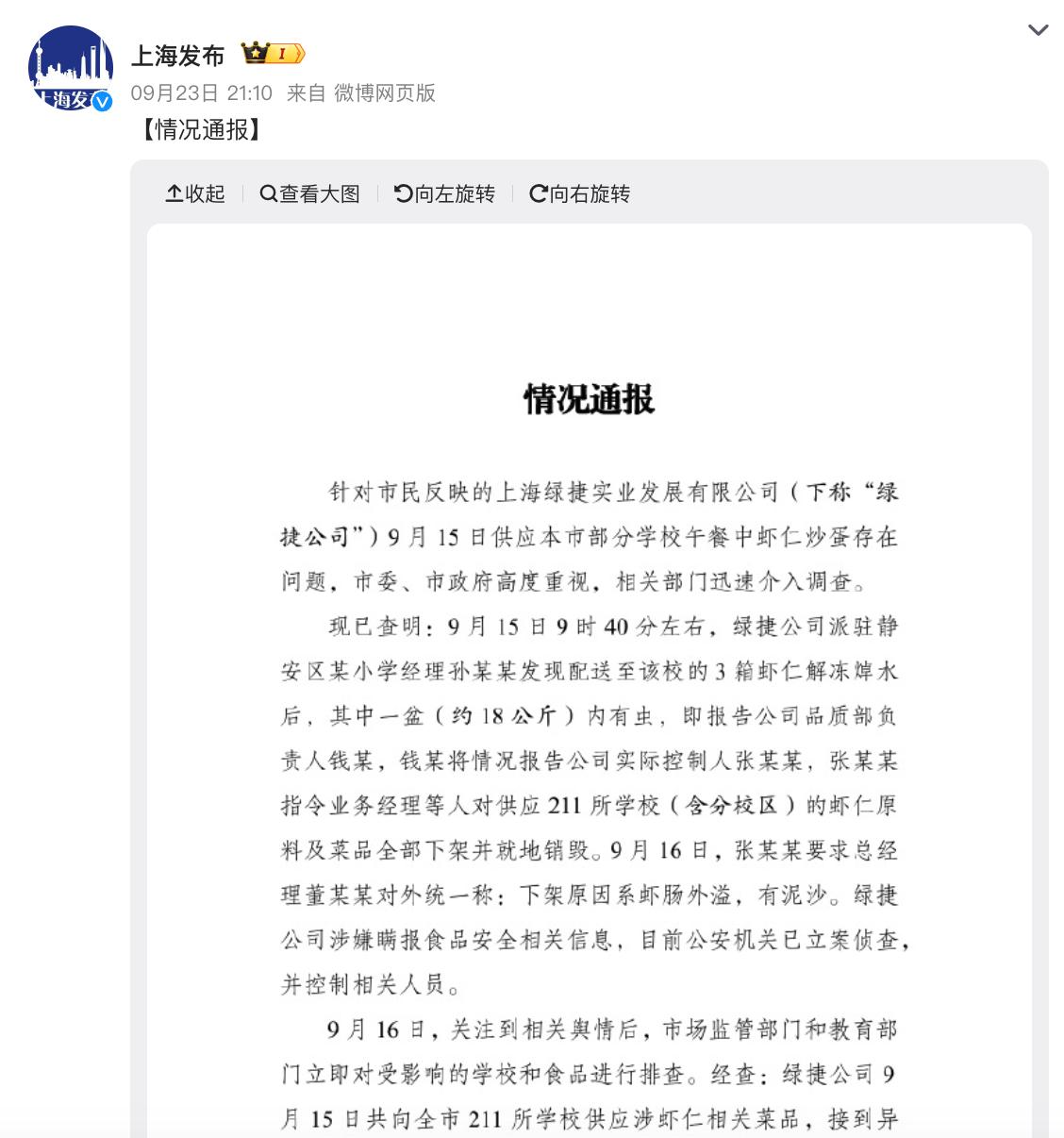 【上海绿捷被强制执行】上海绿捷被执行27万元企查查APP显示,近日,上海绿捷实业发展有限公司新增一则被执行信息,执行标的27.26万元,案由为提供劳务者受害责任纠纷,执行法院为上海市闵行区人民法院。 此前官方通报称上海绿捷涉嫌瞒报食品安全相关信息,公安机关已立案侦查并控制相关人员。对此,上海绿捷实业发展有限公司针对其供餐问题进行道歉。