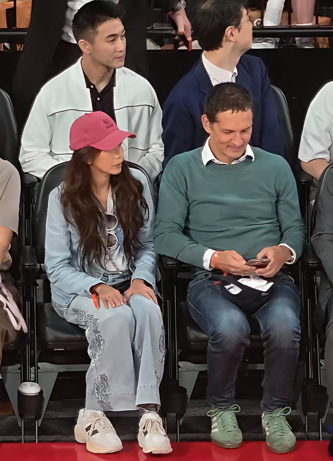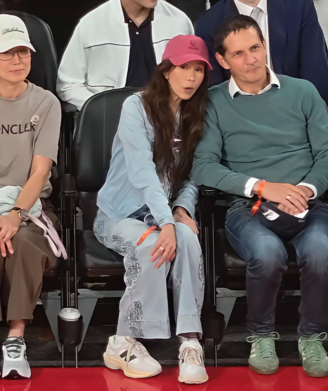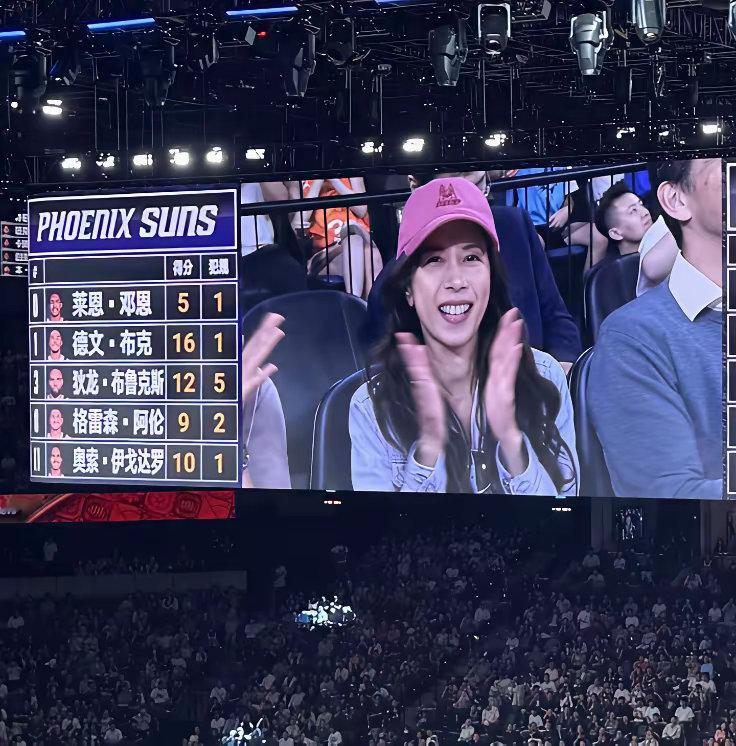 55岁莫文蔚和德国籍老公一起在澳门看篮球比赛,夫妻俩坐在第一排,看起来很恩爱,她的老公面相好慈祥啊[允悲]
