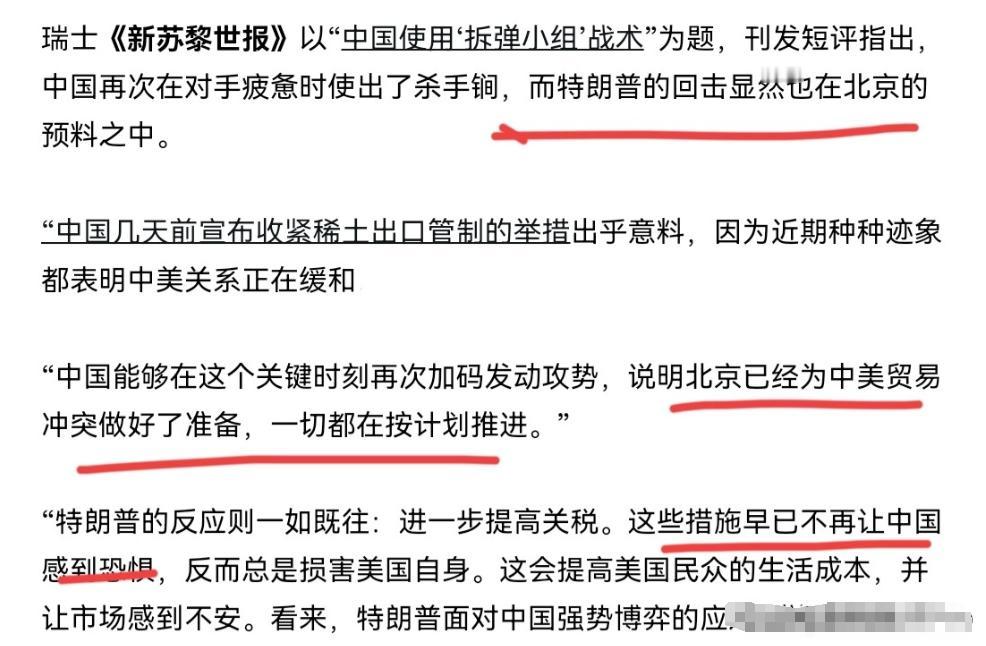 在我们反制美国之后,瑞士《新苏黎世报》表示,中国的反制让美国陷入了无牌可打的窘境