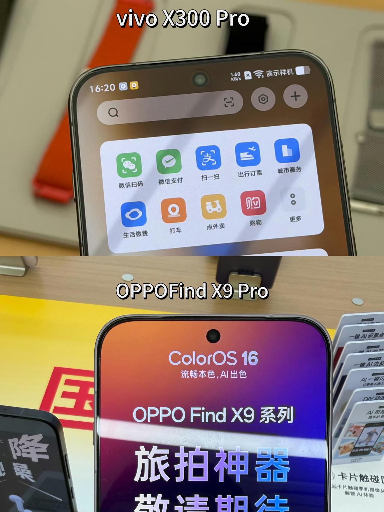 纠结了1个月,还是选择和iPhone17说拜拜👋 作为一个老用户,本来还想冲新款iPhone的,但今年的iPhone 17实在不是我的菜,续航和拍照提升也感觉平平无奇,实在勾不起我的升级欲望。。。所以纠结再三,决定投向安卓阵营😓 👀我就想要一个有长焦,续航强点的影像旗舰,出去旅游拍照都更得劲,最好是拍一整天不充电那种 目前看中了拍照口碑很好的👉OPPO Find X9 Pro和刚发布的👉vivo X300 Pro 必须说,vivo X300 Pro和OPPO Find X9 Pro质感真不赖,今天还去线下摸过了,不愧是新旗舰😍配色都挺好看的,做工很精致,就是vivo的大圆DECO经典但有点审美疲劳;OPPO家的耐看点,关键镜头还小巧,手感挺不错的,钛色好看哇。两家都是极窄四等边,看视频追剧沉浸感更好,但是只有我一个人觉得吗?Vivo 的黑边看起来似乎比OPPO要更宽一些?听说两款都有专属的“影像套装”,拍照实力这块肯定都是第一梯队 但我个人可能更偏向OPPO一点,原因很实在: 1⃣️DECO设计更对我胃口,相机模组不那么突兀 2⃣️一直听说ColorOS很流畅轻快,新的16版本动效无缝衔接更丝滑,我还挺期待的 3⃣️偏爱哈苏的自然影调,感觉更耐看,而且Find X9 Pro还有4k live,旅游出片更简单 4⃣️最关键是电池足足有7500mAh,续航嘎嘎强,太有安全感了! 这回终于决定换个口味了,大家觉得选哪款更好? 果粉IPhoneOPPO Find X9vivo X300 ProOPPO Find X9 Pro