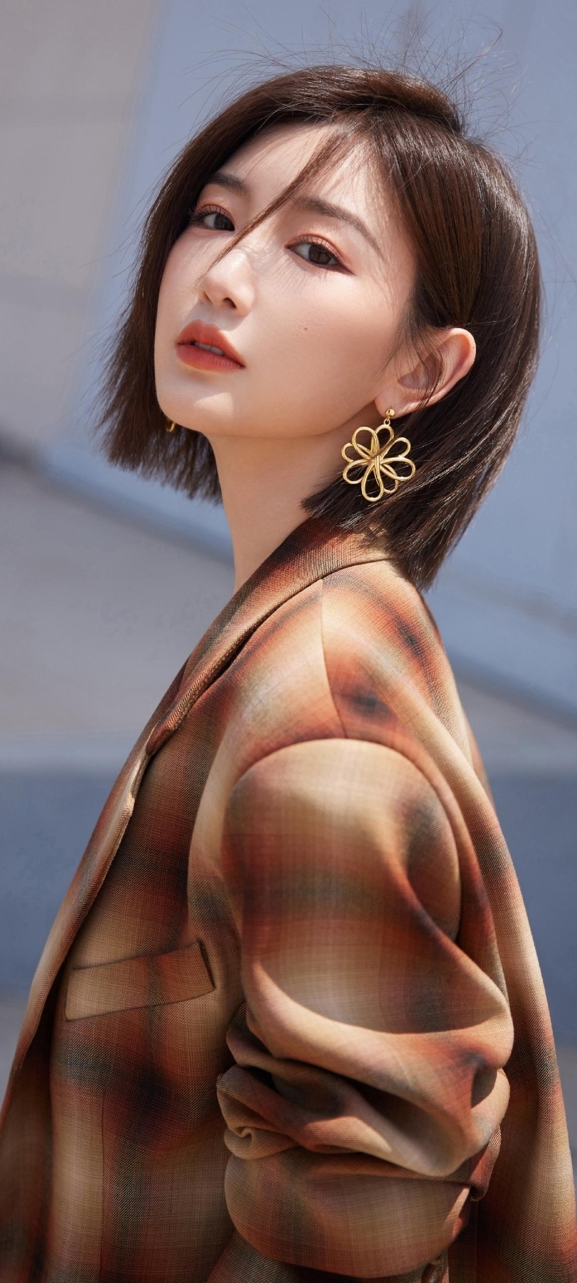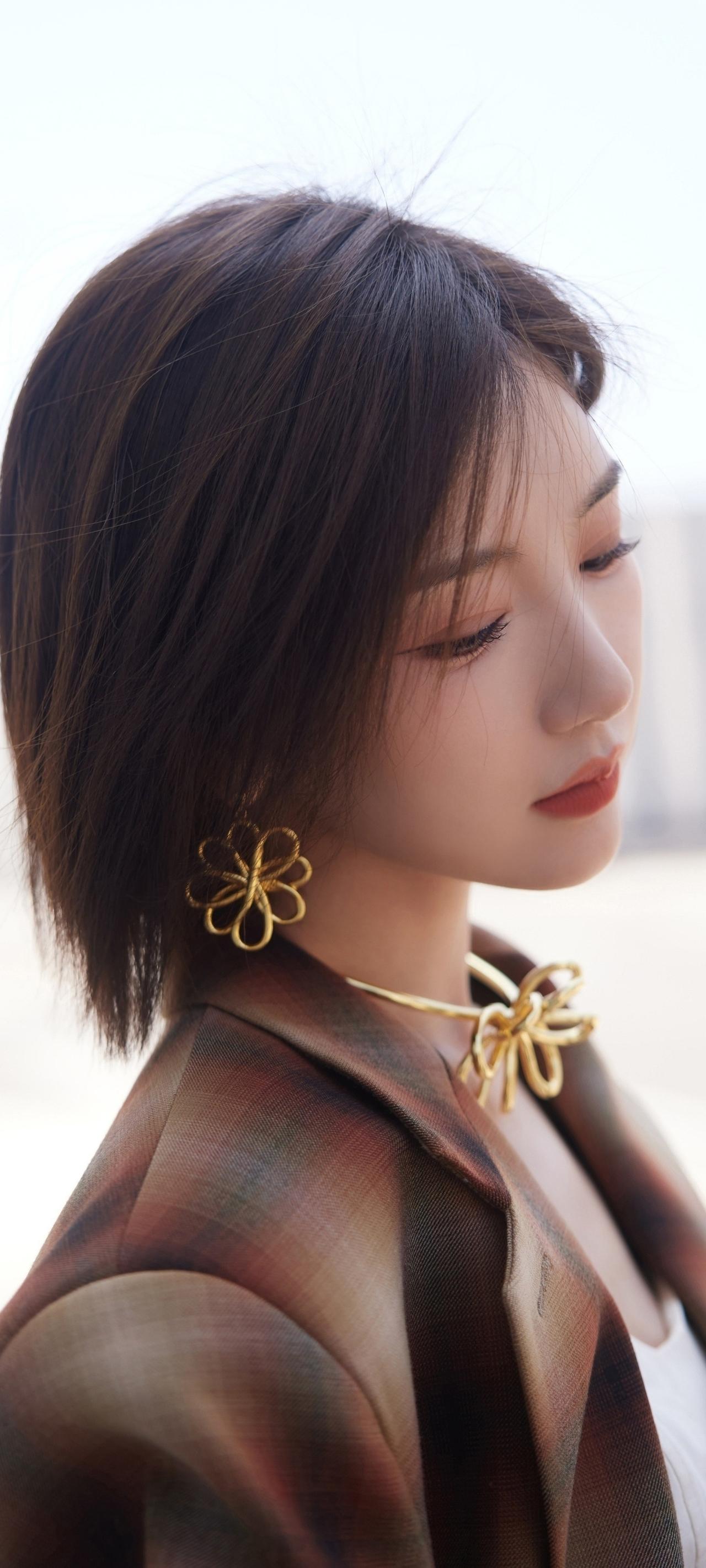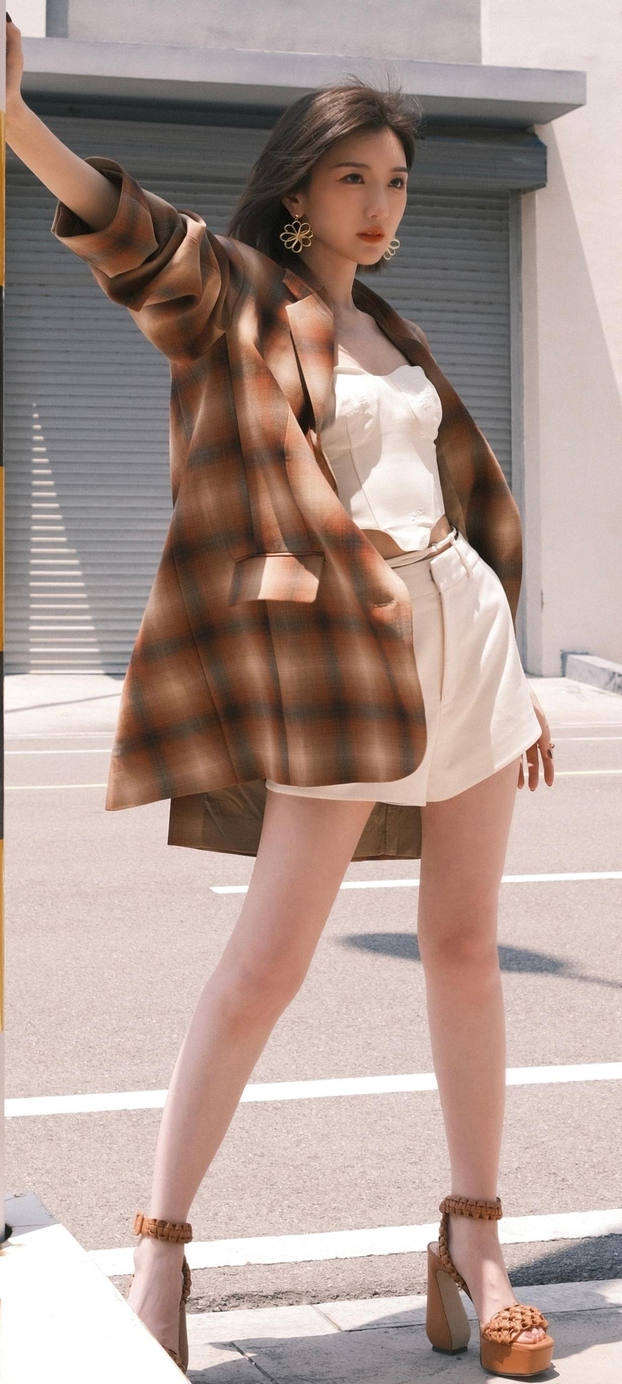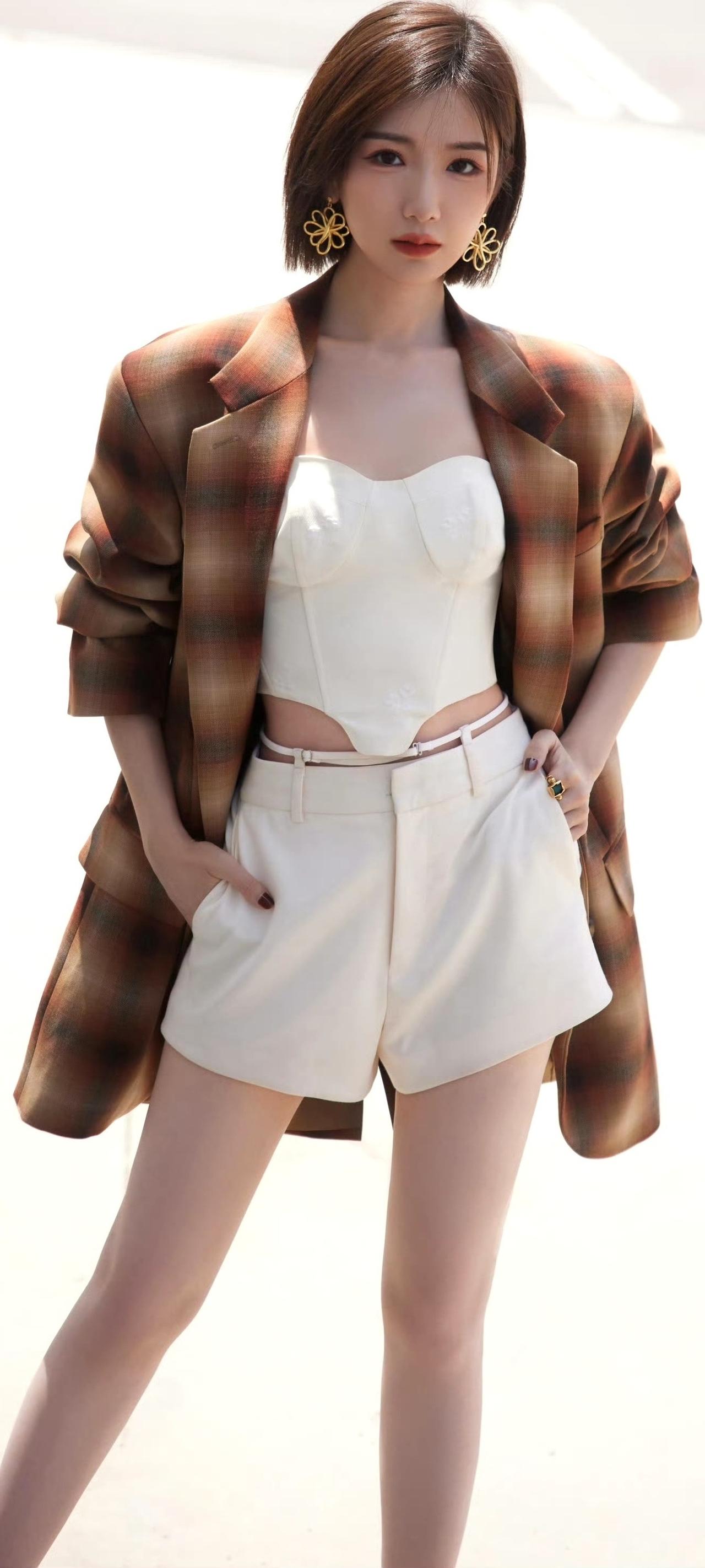 毛晓彤穿格子外套配短裤,好时髦哦!