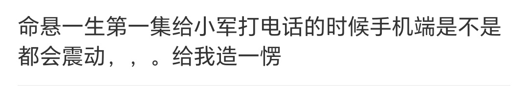 谁家观众看剧吓得摔坏了手机 第一次有这么沉浸式的追剧体验,倪向东背着木箱上山,停在一个偏僻又阴森的小屋里,他给曹小军打电话,铃声从箱子里响起那刻,我的手机竟然也跟着一起抖起来了,沉浸式追剧的朋友一个哆嗦手机就能砸脸上,还有人把手机都扔飞出去了!那个天才设计得这么有代入感的互动追剧体验啊?黄轩你让我来追剧的!你给我赔手机!!! 电视剧命悬一生