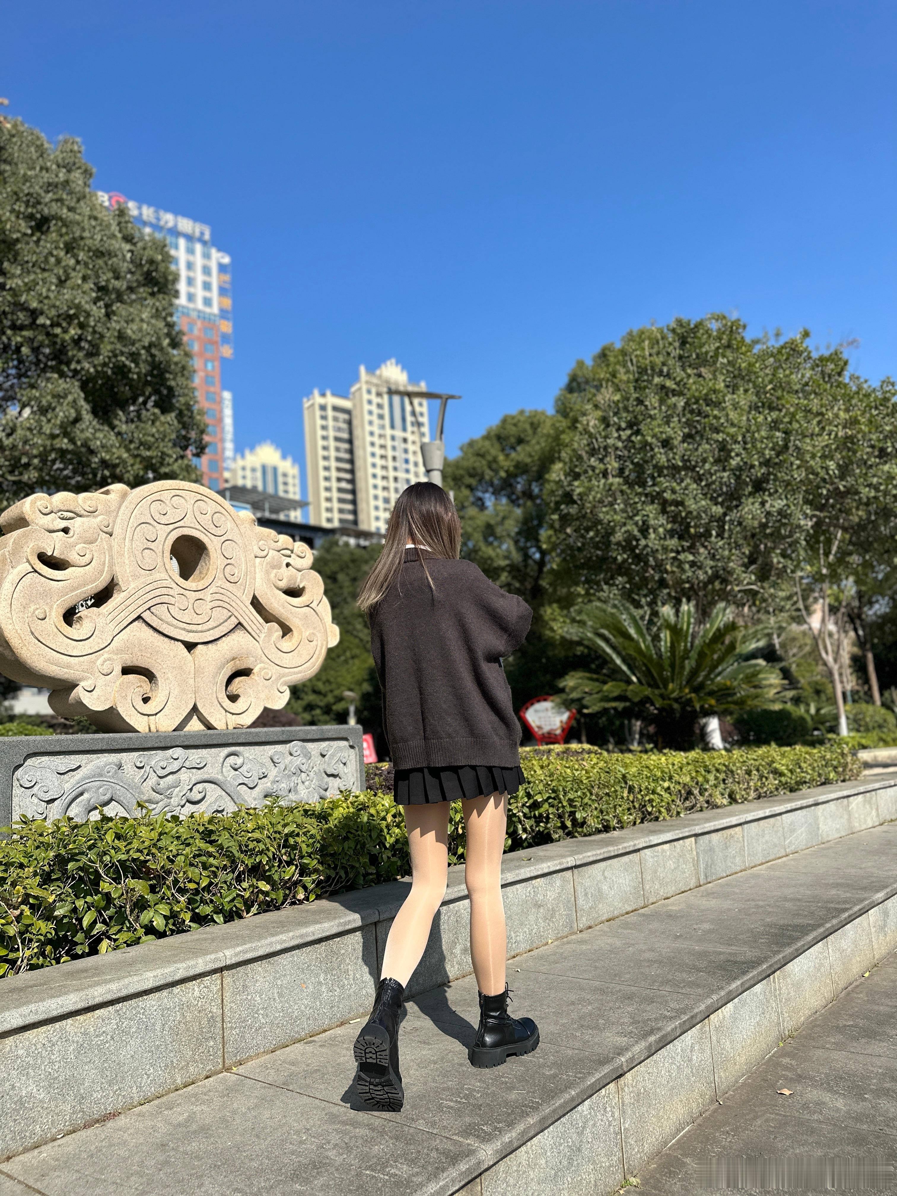 坐着拍照今日穿搭(ootd)