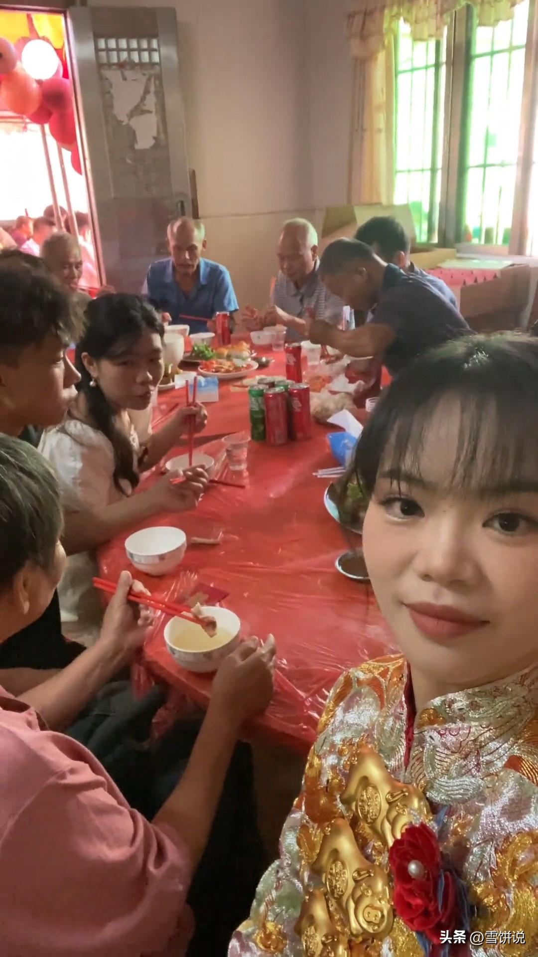 “扎心了!”一女子婚嫁当天,在网上晒出自己结婚出嫁的照片,本以为会收到满满的祝福,却没想到,没人讨论她的妆容多美、婚服多华丽,反而全盯着饭桌看,被质疑过于寒酸,连个像样的菜都没有! 网友评论: 餐饮文化差异非常大。我同事来自吉林,跟我讲一个经历:20多年前初到广东第一次参加聚餐,上第一盘菜大家就都伸筷子夹菜开吃了,他很纳闷觉得广东人也不穷不缺吃的啊怎么就不能等菜上齐了再动筷呢太失礼了,接着服务员还把吃空的盘子撤走,一边上菜一边撤空盘子,他想自己也赶紧吃吧要不等会菜汁都没了。 广西。我那边是边上边吃,通常到后面是青菜,青菜还没上桌就有不少人吃饱了。 我们那农村摆结婚酒要吃好几天,男方家一般头天晚上和第二天中午是正席,其他时间吃的就相对简单点了,现在好多觉得摆两天很麻烦就搞成一天了,中午吃了就走,不走的就吃了晚饭再走,晚上那顿就很简单了!