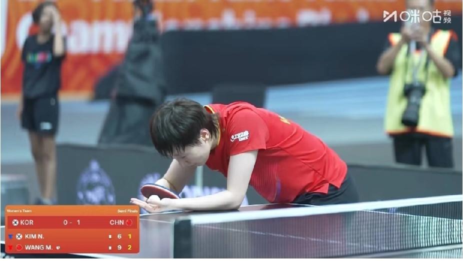 亚锦赛女团半决赛中国再下一城!王曼昱3:1胜金娜英,邱贻可场外指导显功力 印度亚锦赛女子团体半决赛第二场,王曼昱对阵韩国选手金娜英,最终以3:1(8-11,11-5,11-7,11-6)强势获胜!邱贻可作为场外指导,为“鳗鱼”精准布局。场边孙颖莎一脸可爱模样,尽显团队活力。目前中国队大比分2:0领先,第三场将由大迪登场,继续冲击决赛!国乒姑娘们状态在线,期待再创佳绩~王曼昱