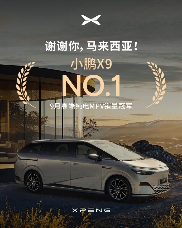 小鹏X9获海外两国9月销量冠军官方信息显示,其实现在泰国和马来西亚9月高端纯电