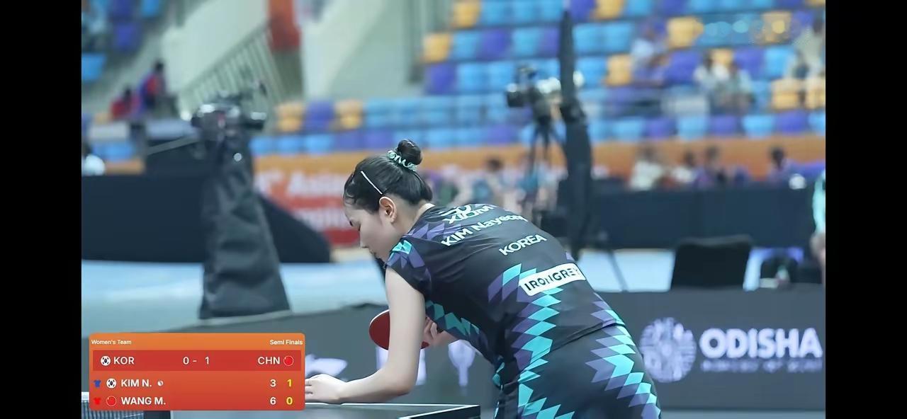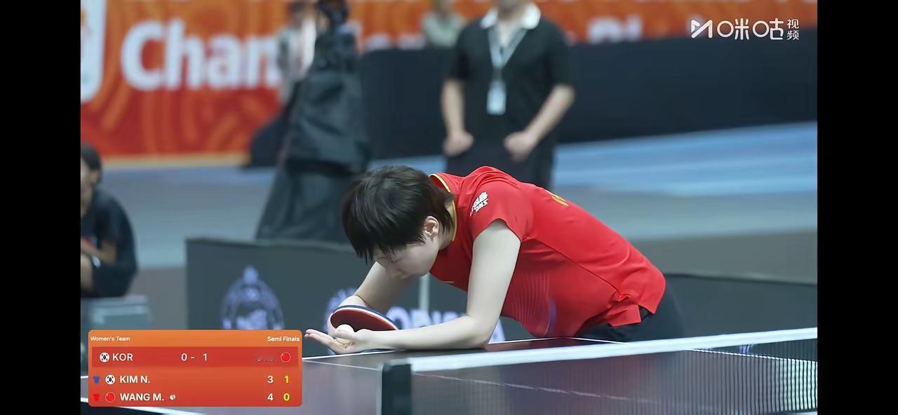 万万没有想到的是,相当稳健并且十分凶猛的曼昱,第一局竟然8:11输给了韩国美女金娜英。 虽然说万万没有想到曼昱会在女团半决赛中首局输给并不是太强的对手金娜英,但是转念一想,谁又会是常胜将军呢。 所以,坚信曼昱的实力,相信她会在后面几局逆转比赛。加油,曼昱![加油][加油][加油]