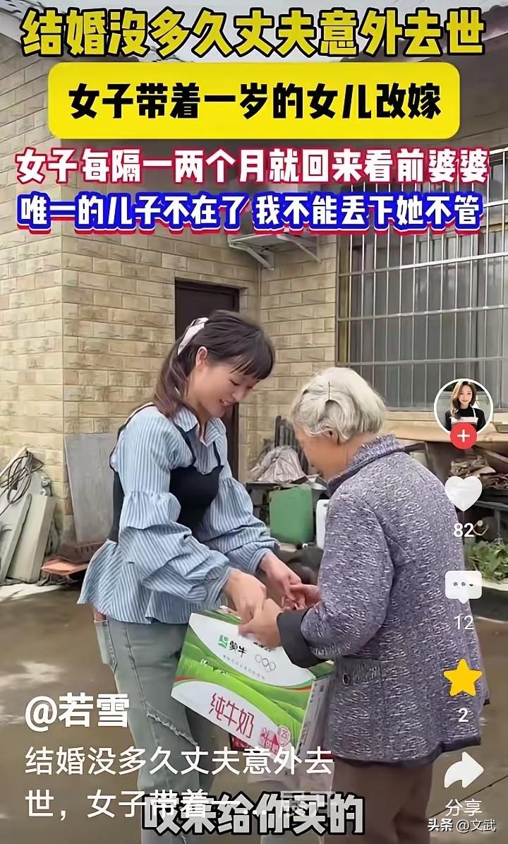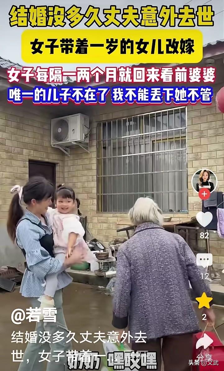 结婚没多久丈夫去世后,女子在婆婆的劝说下带着女儿改嫁,但每月仍会带着孩子回来探望。 妈,妞妞会叫奶奶了!女子抱着女儿走进小院,手里还提着刚买的降压药。婆婆眼眶发红:你有了新家,不用总惦记我。可女子只是轻声说:您儿子不在了,我就是您的女儿。 两年前,女子的丈夫因意外离世,留下怀孕的她。孩子出生后,婆婆主动劝她改嫁:你还年轻,别耽误一辈子。但女子承诺:您永远是我的妈。 如今,她定期回来打扫屋子、添置衣物。邻居们都说:这闺女比亲生的还贴心!婆婆逢人便夸:我命苦,但老天给了我个‘二女儿’。 女子的坚持,让冰冷的命运有了温度。