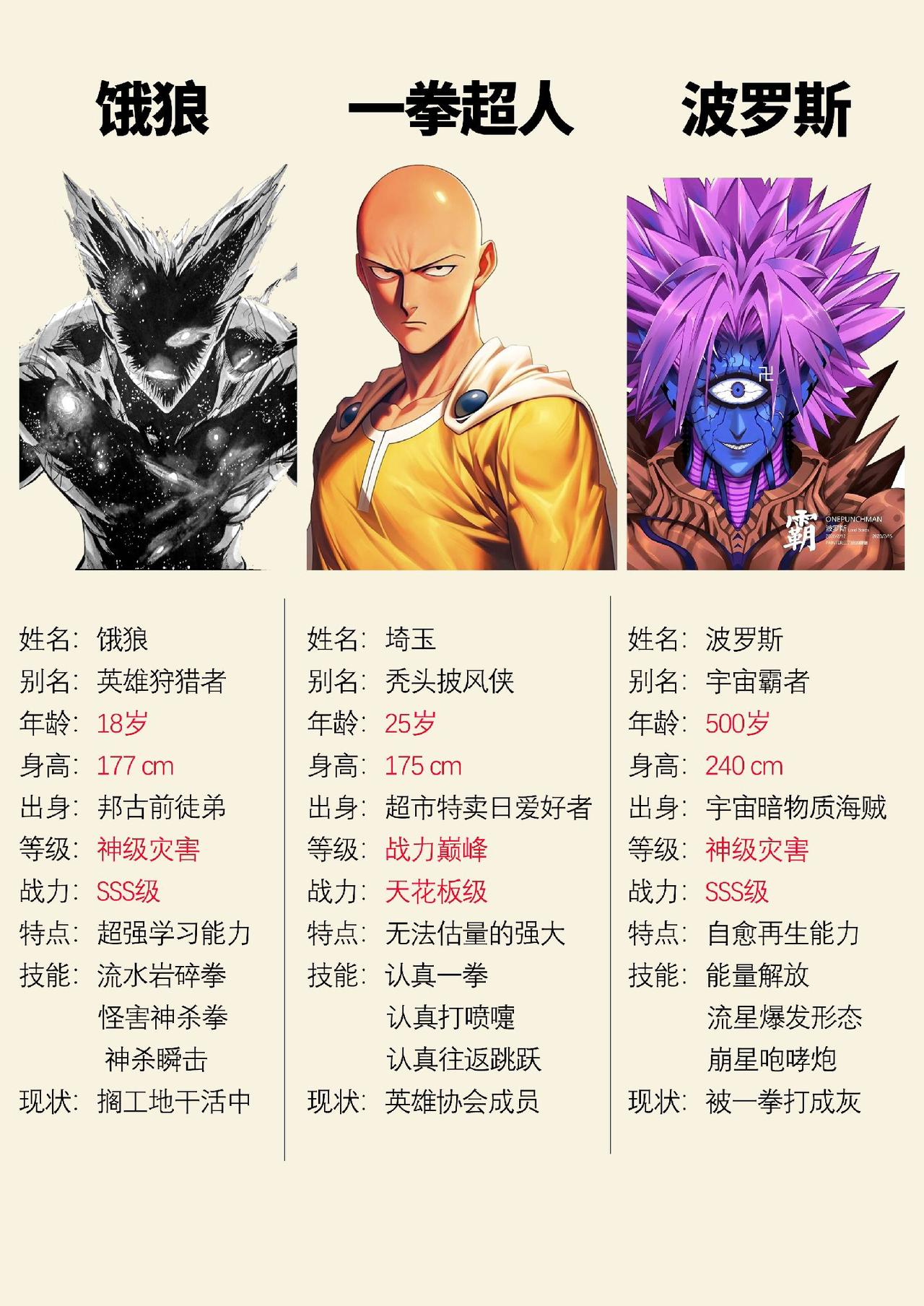 一拳超人中的三位boss级人物