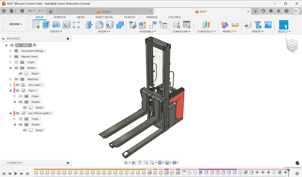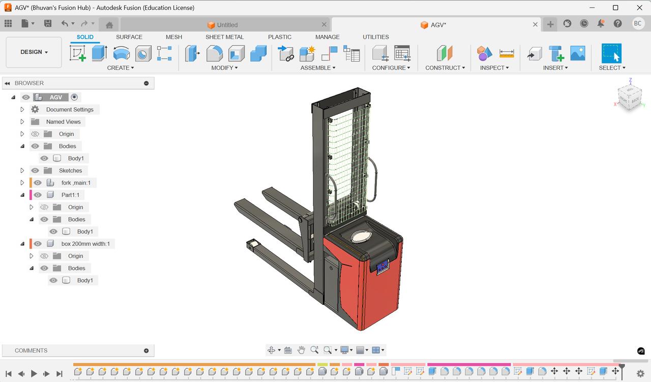 自动导引车(AGV)叉车三维模型 适用于工业仓库自动化应用。设计包含紧凑且功能完整的提升机构、货叉结构、安全防护网和驱动装置外壳,体现了智能工厂和物流系统中所用的无人叉车概念。 有需要学习构造的可去网站搜索免费下载。