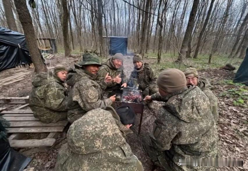 俄乌冲突前线的雇佣兵军团! 吃的饭还不错,有时候聚集起来,能够吃上烤肉! 这些雇