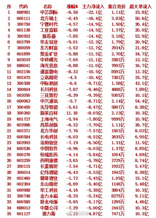10月14日尾盘30分钟,主力资金大幅卖出的35名单!