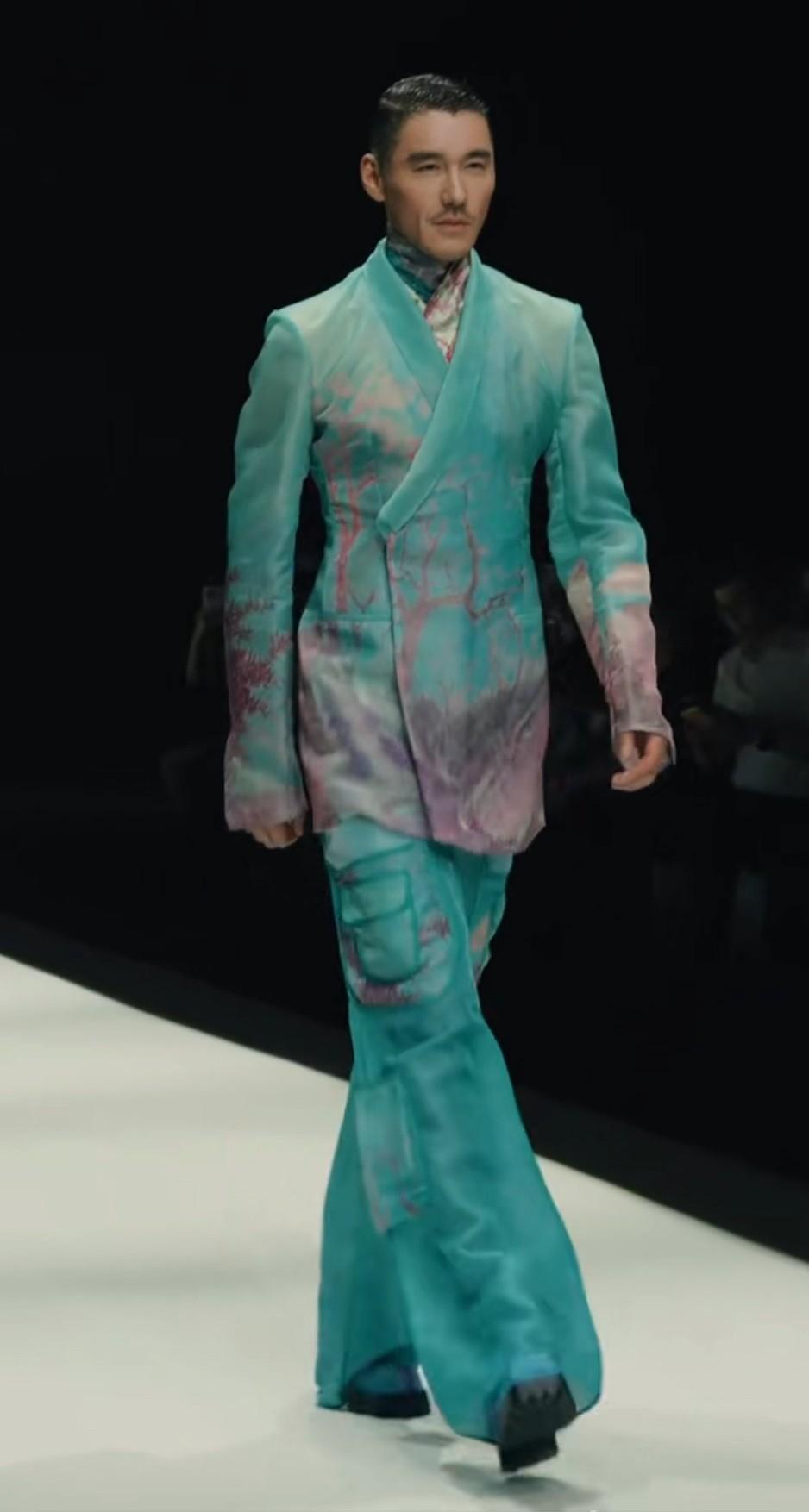 他是中国模特界的标杆,今晚他是国际T台上最耀眼的星,胡兵穿着中式服装亮相在国际T台上,最中式的中国服装打败了西方的服装,成为T台上最耀眼的星,现在随着中国的强大,中国在世界上有了话语权,许多中国的东西逐渐走出国门,展示在国际舞台上,得到越来越多的国外人士的认可和喜欢,现在中国的就是世界的,越是民族的就越是世界的。