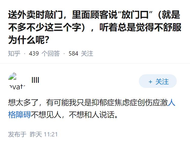 送外卖时敲门,里面顾客说“放门口”(就是不多不少这三个字),听着总是觉得不舒服为