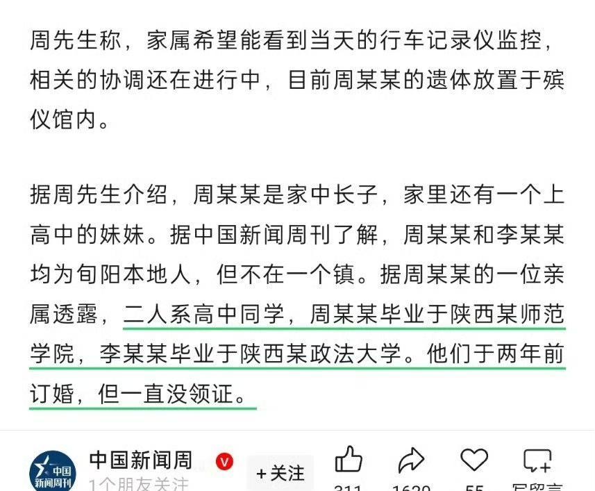 婚礼当天新郎突然跳河! 最后一句话竟戳中无数人! 到底受了多大委屈才走这步? 谁能想到,本该热热闹闹办婚礼的日子,新郎周某某却做出了这样的极端选择。据他父亲说,孩子留下的最后一句话就是“我从来没有受过这么大的委屈,这个婚我不结了”,字里行间全是绝望,想想都让人心疼。 身边亲属也透了消息,周某某和新娘李某某还是高中同学,俩人知根知底的,按理说感情基础该很稳。后来周某某考去了陕西某师范学院,李某某则读了陕西某政法大学,毕业后也没断了联系,两年前就订了婚,只是一直没领结婚证。 好好的婚礼,怎么就闹到新郎说受了大委屈、要取消婚礼的地步?没人知道当天到底发生了什么,是婚礼流程上出了岔子,还是俩家或者小两口之间有没解开的矛盾。只知道这句“没受过这么大委屈”,藏着太多说不出的难受,不然谁会在人生最重要的日子,放弃一切走极端啊。