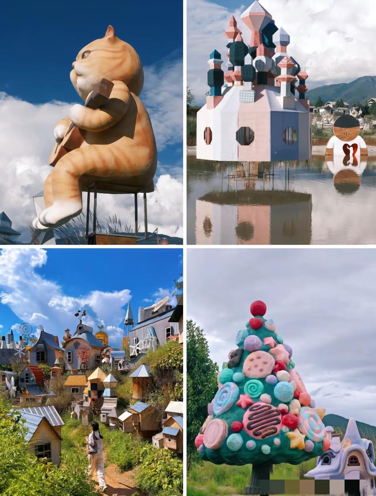 破案了,这云南丽江的某园区中因为一些诡异的造型展示。 有几个都是非常相似一个人,