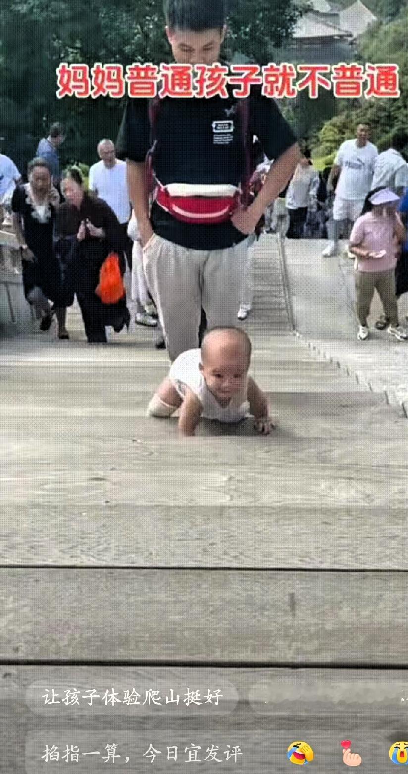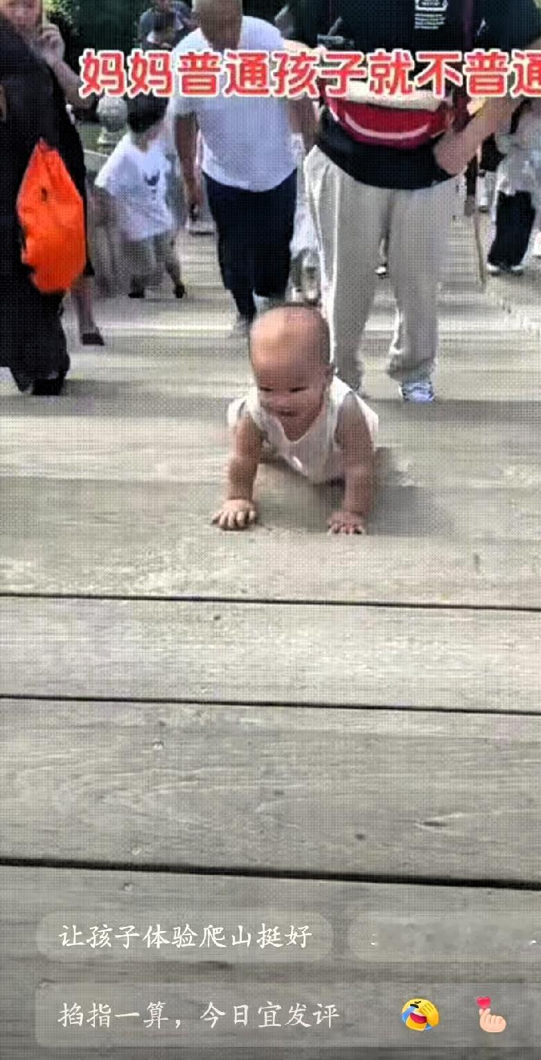 “使不完的劲!”,九江市,夫妻俩抱着孩子一起爬东林大佛 爬了一半就扛不住,只好把孩子放下歇脚,没料到刚松开手,穿著过膝袜的小家伙竟自己扶着台阶边,一步一步往上挪! 夫妻俩又惊又乐,没再把娃抱起来,只让爸爸紧紧跟在身后护着,生怕孩子踩空摔跤。路过的游客见了这一幕,都忍不住停下脚步,对着娃连连点赞,嘴里不停夸“这小孩也太勇敢了,这么小就自己爬大佛!” 有网友说这对爸妈“真舍得让娃遭罪”,可我却觉得,这哪里是“遭罪”,分明是给了孩子成长的机会。咱们养娃总爱把“我为你好”挂在嘴边,怕孩子摔着就不让他跑,怕孩子累着就啥都替他做,却忘了孩子的潜力,从来都是在“自己试”里练出来的。 就像这爬大佛的宝宝,要是爸妈一直把他护在怀里,别说感受自己登顶的快乐,恐怕连“我能自己爬台阶”的自信,都要晚好多年才会有。其实孩子比我们想的更坚强,他们缺的从不是能力,而是一次被信任、被放手的机会。 你家娃有没有过哪件小事,突然让你发现“原来他早就悄悄变强了”?