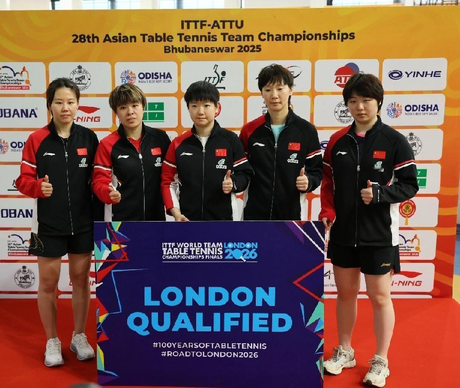 中国女乒锁定2026伦敦团体世乒赛资格! 中国女子乒乓球队在28届亚洲乒乓球团体锦标赛上表现出色,成功拿到2026年伦敦团体世乒赛入场券!图中几位国乒女将身着队服,竖起大拇指,尽显自信与实力。期待她们在伦敦赛场上继续书写乒乓传奇,为国争光! 中国乒乓球队