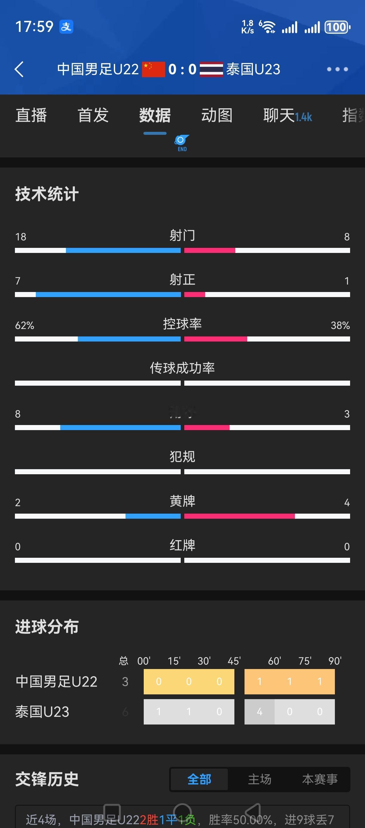 泰国队U23也不是鱼腩!0:0逼平中国U22! 全场中国队整体占优!射门18:8