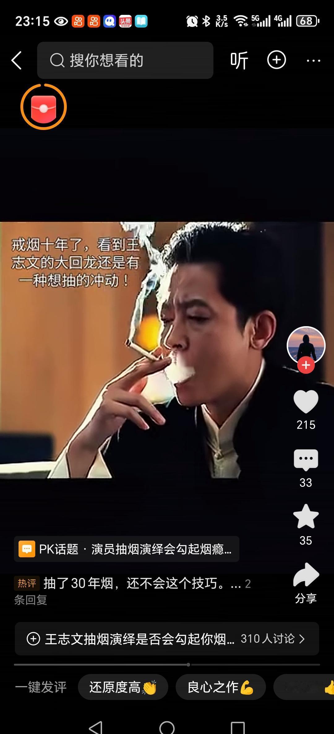 王志文抽烟的镜头,曾是观众心里的神来之笔。 现在,平台不敢推了,剪辑师不敢放了,连B站都悄悄降了权。 可没人真把这段戏删了——只是,烟没了,台词还在。 那些年,一根烟是城府,是算计,是沉默里的千军万马。 现在,观众自己动手,把烟P掉,把火机删了,只留那句“道可道,非常道”。 弹幕刷得比谁都勤:“不抽烟的王志文,还是那个王志文。 ” 不是不让看,是不能美化。 不是不让传,是不能当氛围组。 老戏骨的演技,从来不在烟雾里,在眼神里,在停顿里,在你没注意的呼吸里。 平台删得了一根烟,删不掉观众心里的戏。 他们剪掉的,是镜头; 留下的,是记忆的原浆。