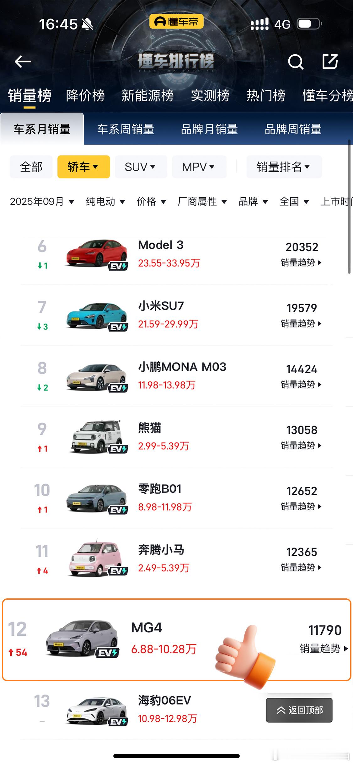 全新MG4 上市首月卖出11790辆