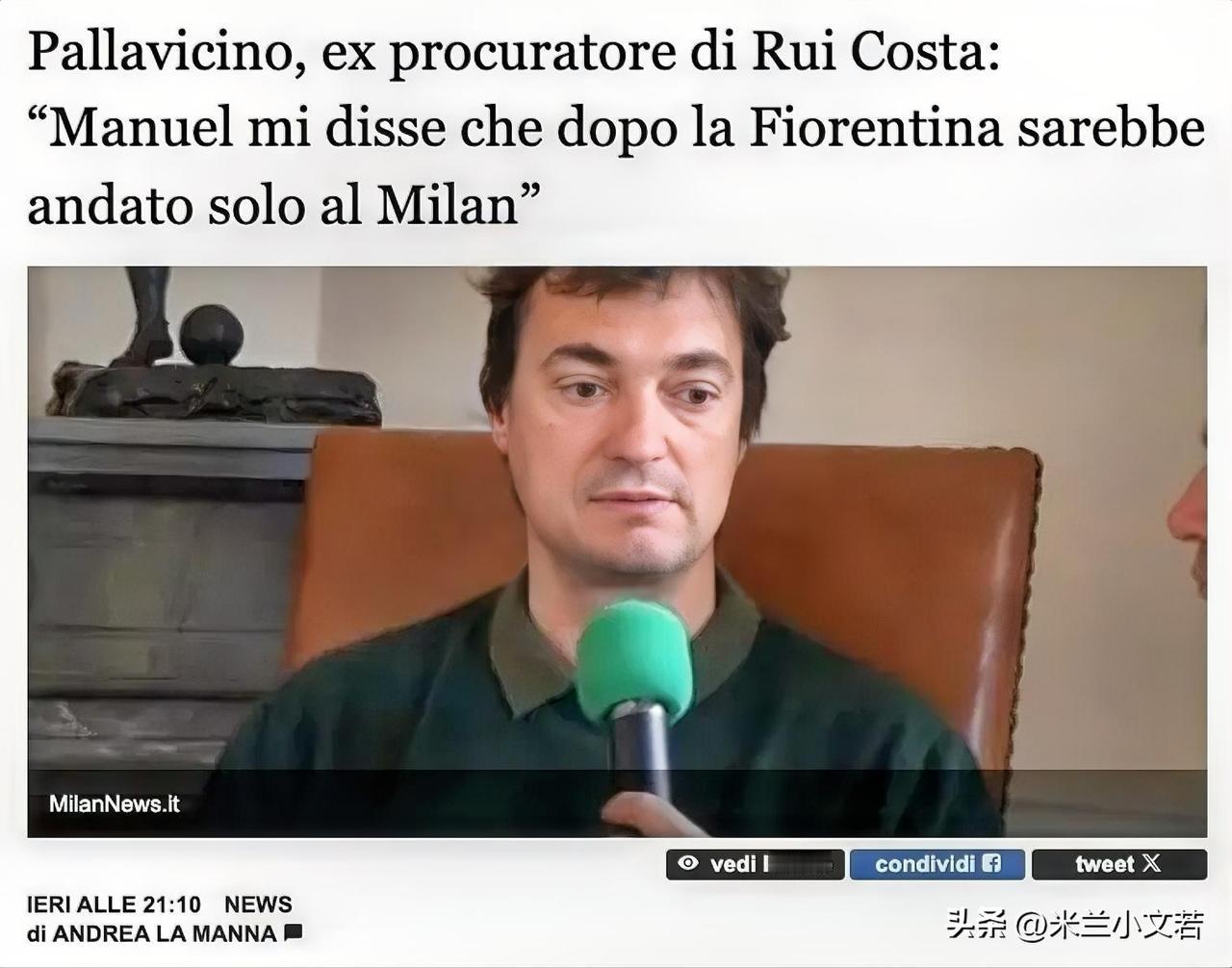 只有米兰值得加盟!鲁伊科斯塔前经纪人卡洛·帕拉维奇诺接受采访表示当年鲁伊科斯塔被
