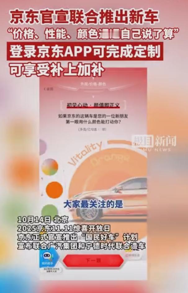 京东也下场新能源汽车行业了… 马斯克在研究登陆火星,奥特曼在研究AI进化,苹果造车这么多年最后放弃了,国内虽然产业链成熟了,但现在造成跟玩似的,京东联合宁德时代和广汽集团,三方联合推出,京东出面回应说不涉及直接制造, 大概率是宁德时代的电池技术,广汽的整车技术,京东的网络服务配套技术…只希望能把安全放在第一位! 京东最近涉及面越来越广了,先是大刀阔斧杀入外卖行业,然后要搞线下的“七鲜小厨”餐饮,现在要进军汽车行业, 各个网友有何高见?
