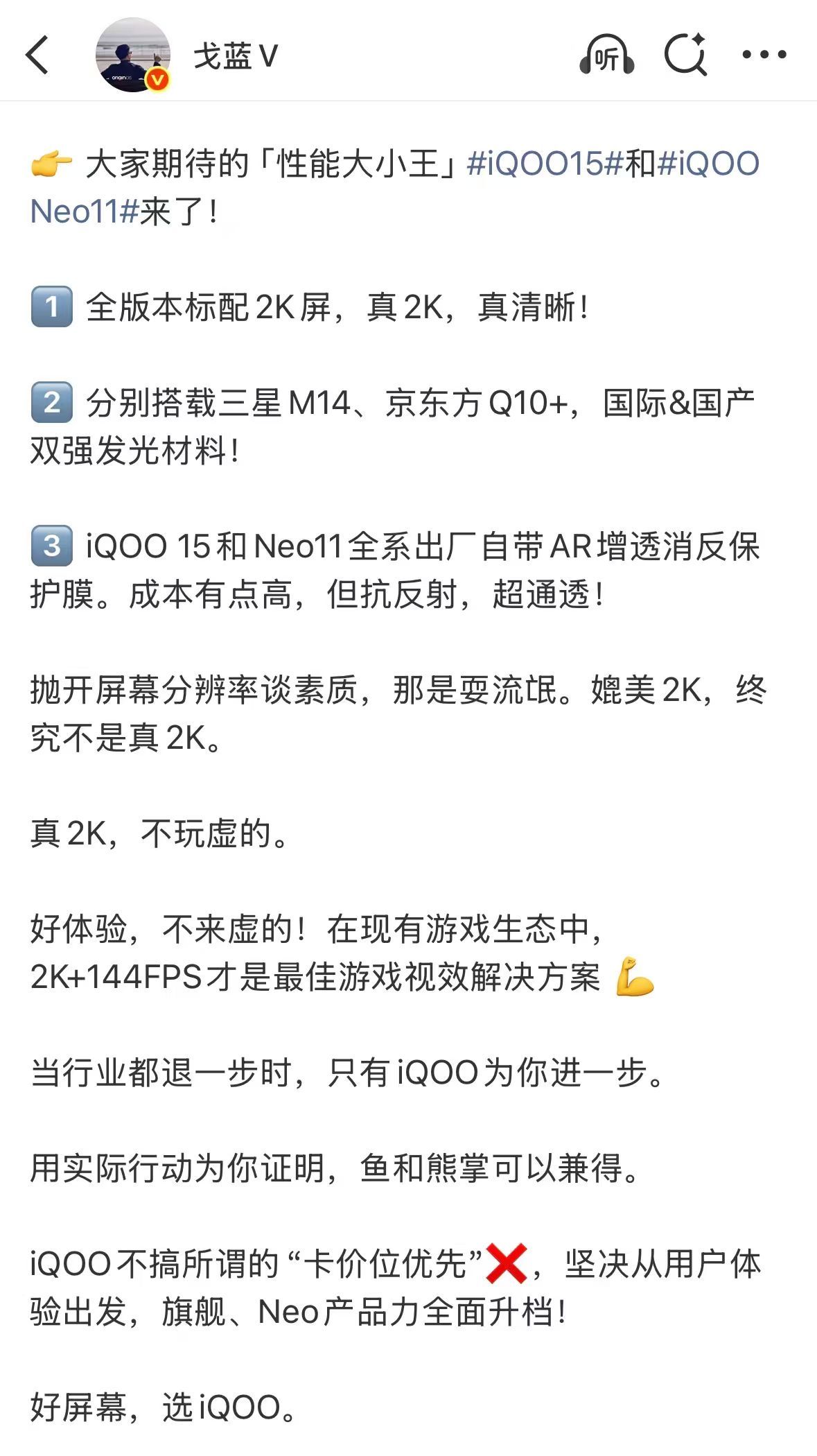 iQOO这次是把游戏体验又往前推了一代。现在消费者要求老高了,玩得爽是前提,屏幕