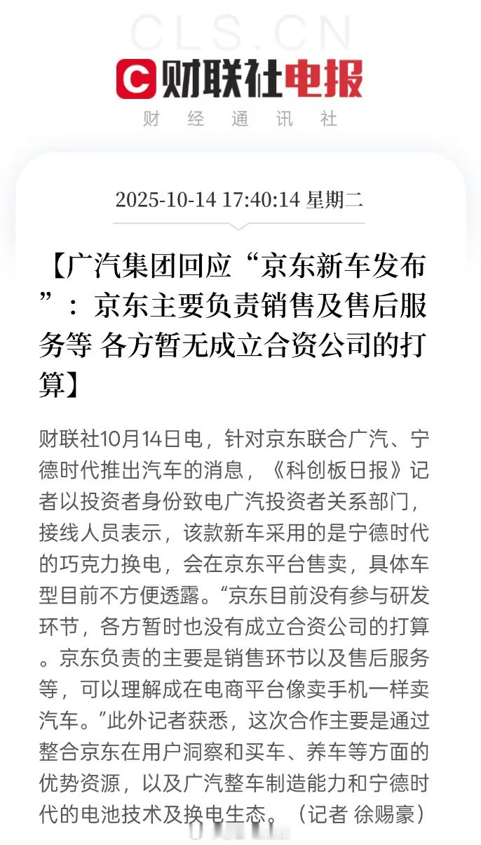京东造车京东回应下场造车京东称不直接涉及造车广汽集团回应京东造车大v聊车
