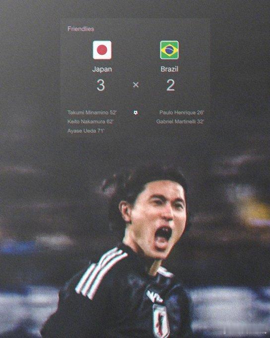 【史上第一次!】日本3比2巴西,日本队完成大逆转,史上第一次击败巴西队,此前13次碰面,日本2平11负。