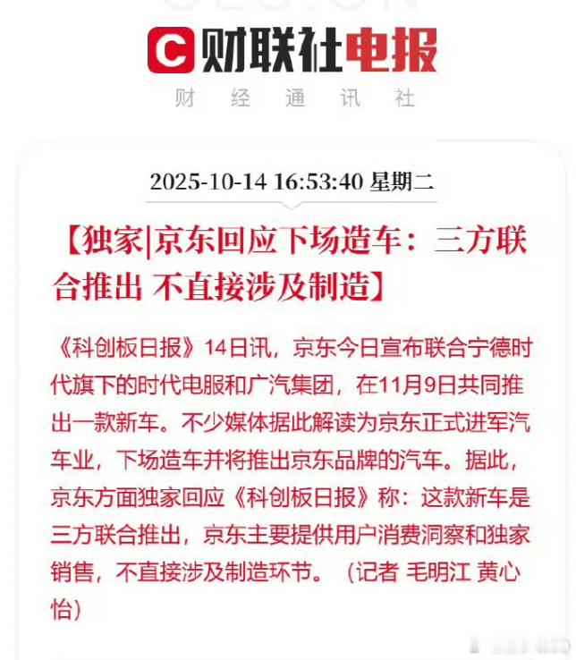 京东没有造车,看起来就是拿到了销售权京东回应下场造车