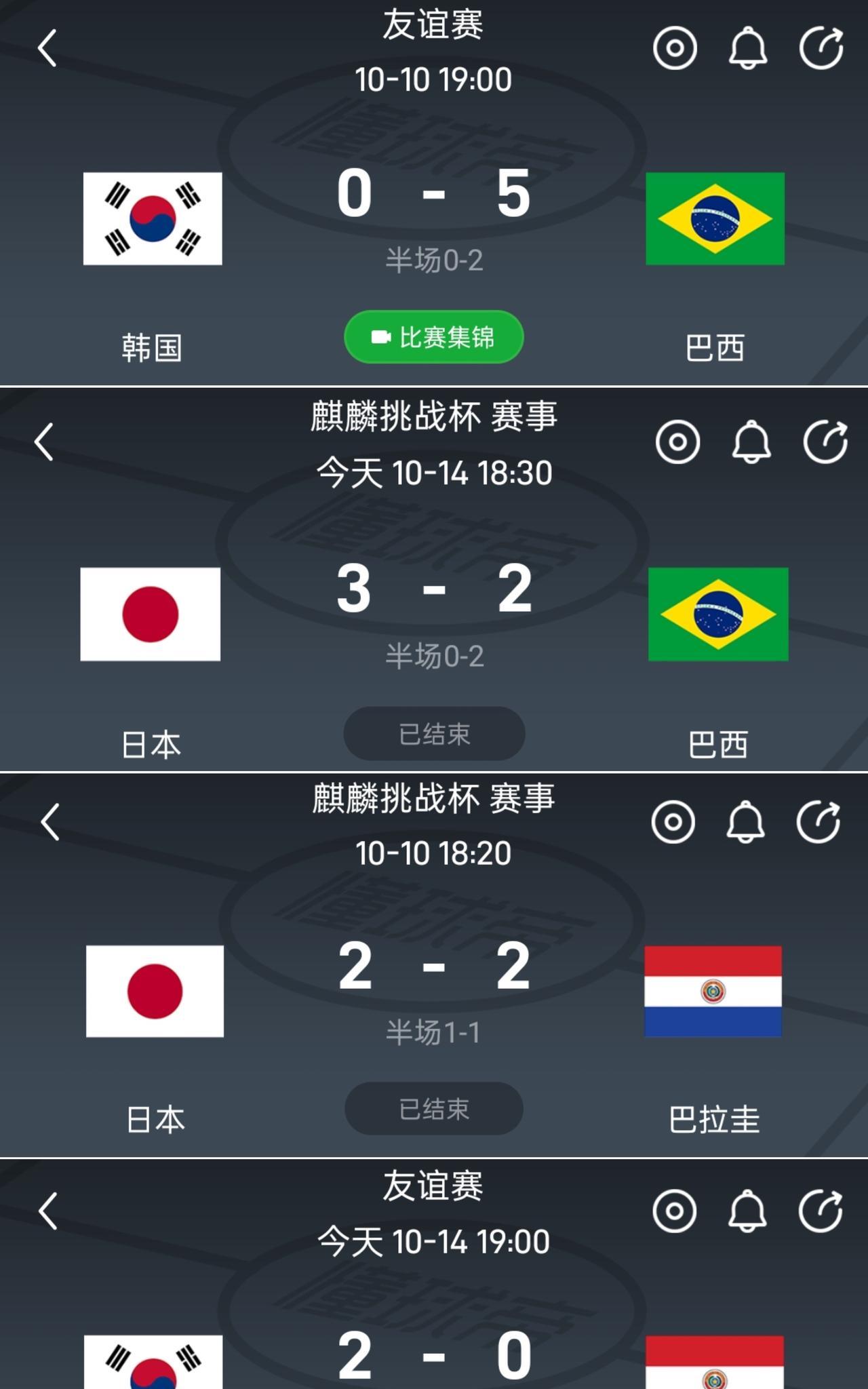【日本队史首次战胜巴西,韩国却总是大比分输巴西】日本和韩国与巴西和巴拉圭最近几次世界杯前都会固定安排挑战赛,而且基本都会全主力出战,毕竟是世界杯备战周期大家都很重视!然而三四年过去了比赛结果却发生了很有意思的变化: 韩国2-2战平巴拉圭,1-5惨败巴西! 韩国0-5惨负于巴西,2-0战胜巴拉圭!