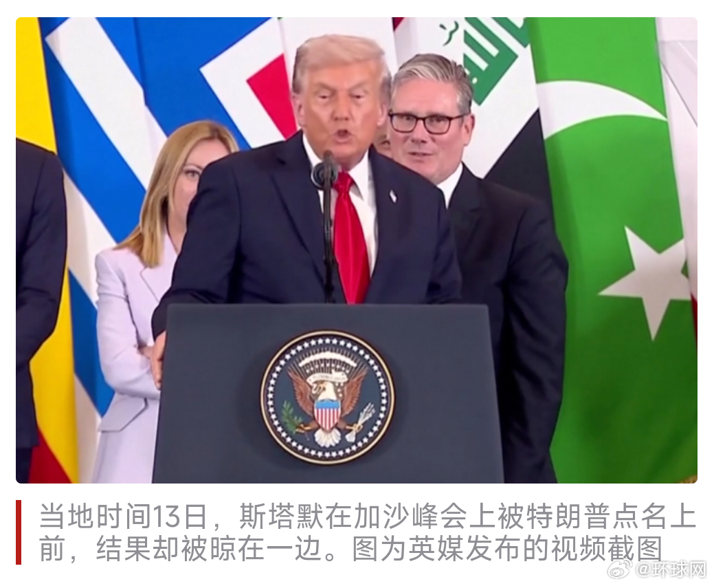 #英首相加沙峰会遭遇史诗级尴尬#【斯塔默加沙峰会遭遇“史诗级尴尬”:被特朗普点名上前误以为要发言,结果被晾在一边】据美国《赫芬邮报》、英国《每日邮报》等媒体报道,英国首相斯塔默13日在埃及参加加沙峰会时遭遇“尴尬一刻”。他与美国总统特朗普同台并被点名上前,似乎以为被邀请发言,却在片刻寒暄后被对方“晾在一边”。对此,不少网友调侃称,斯塔默“以为自己被邀请发言”,结果经历了“史诗级尴尬”。