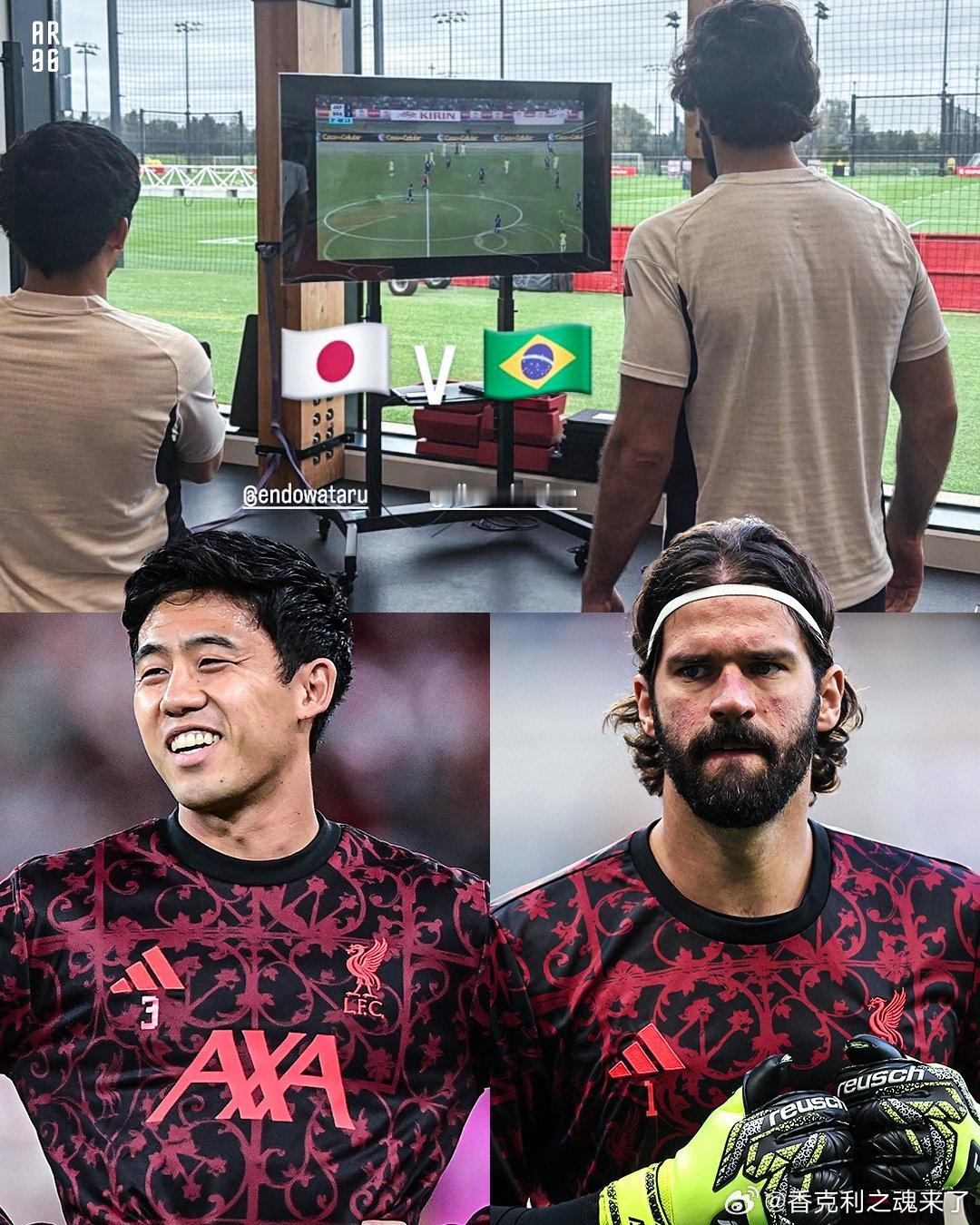 森爹和远藤航一起观看巴西对阵日本的比赛