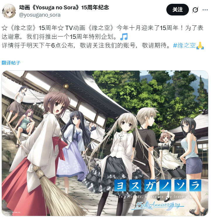 《缘之空》将在明日推出动画15周年特别企划!真的是活久见了[哆啦A梦害怕]