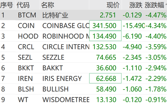 美股加密货币概念股普跌。