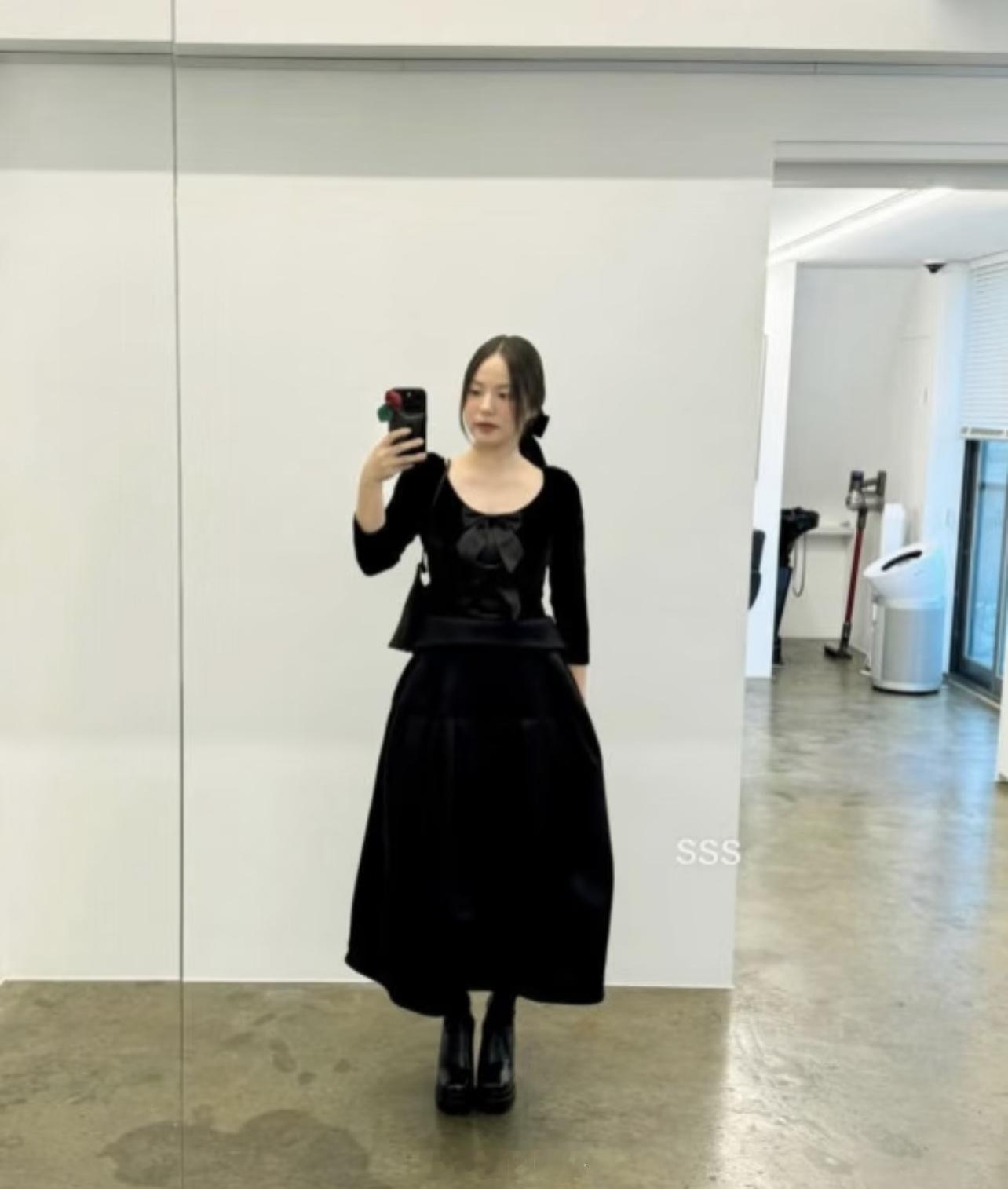 公开的照片中,闵孝琳身穿优雅的黑色两件套,正在对镜自拍。这身装扮正是她近期引发热议的宾客造型。本月10日,闵孝琳与丈夫太阳一同出席了摄影师木正旭的婚礼。随后,她在婚礼现场的造型通过网络社区曝光,因身材较活动期略显丰腴而成为话题。