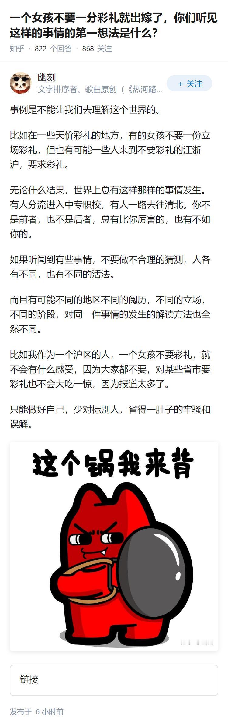 一个女孩不要一分彩礼就出嫁了,你们听见这样的事情的第一想法是什么?