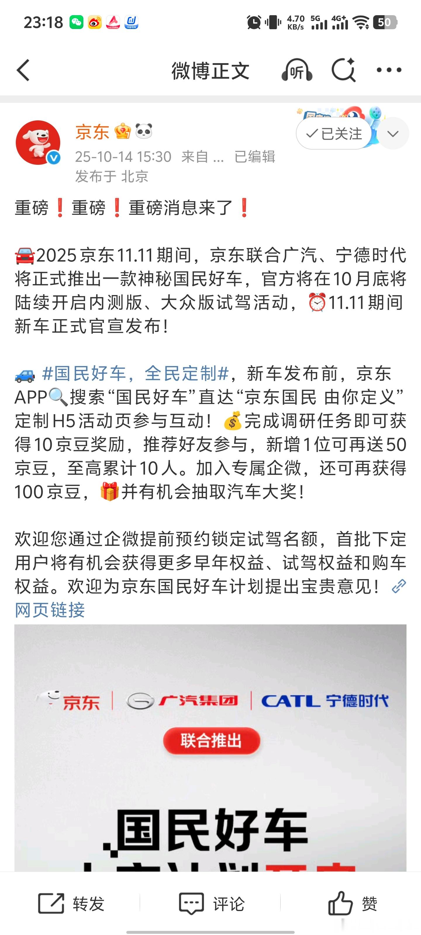 简单来说就是,京东找了广汽贴牌造车,然后使用宁德时代电池,最后京东来完成运营和销售。
