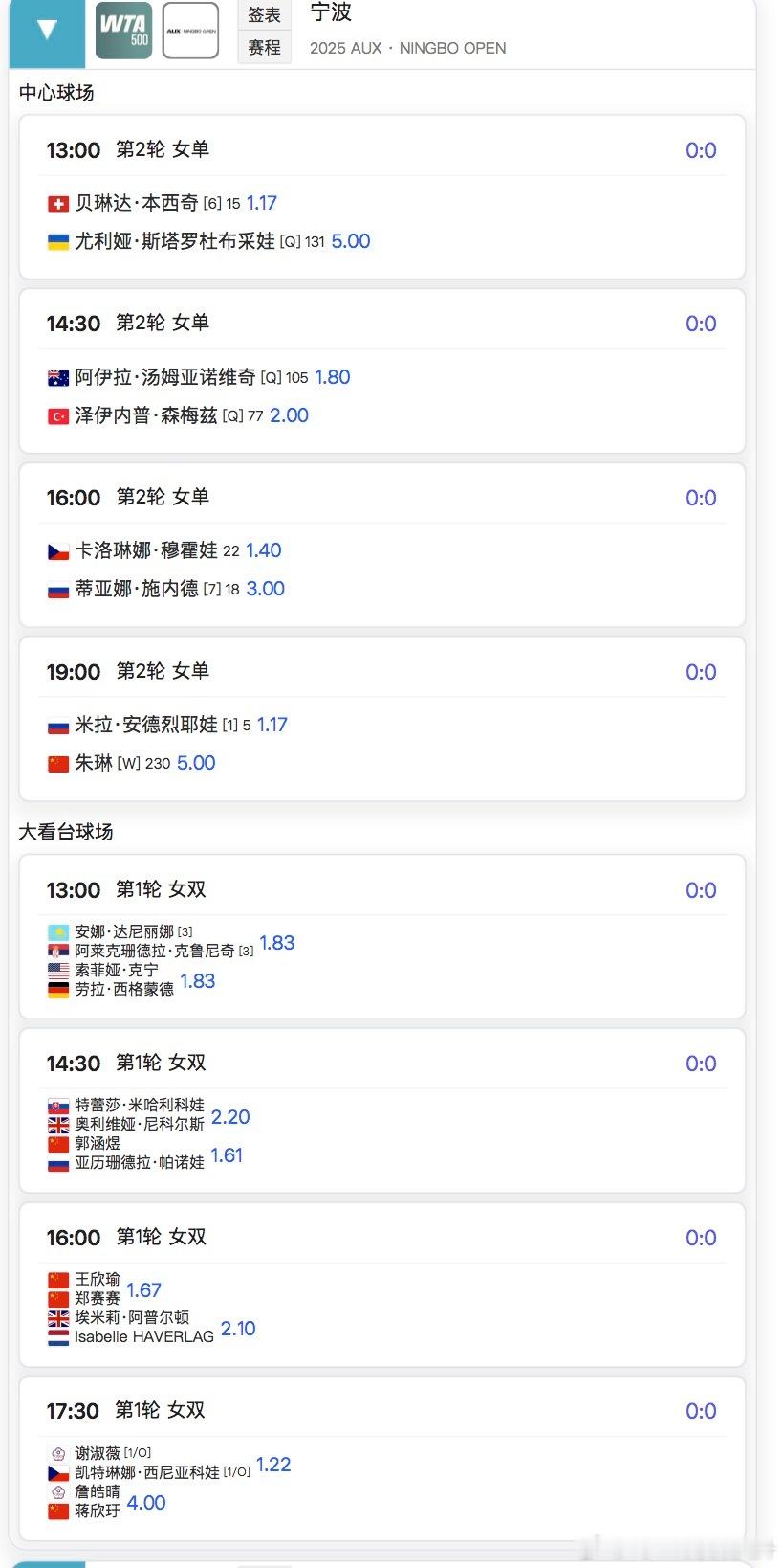 19:00 🇨🇳朱琳vs🇷🇺安德列娃🔥