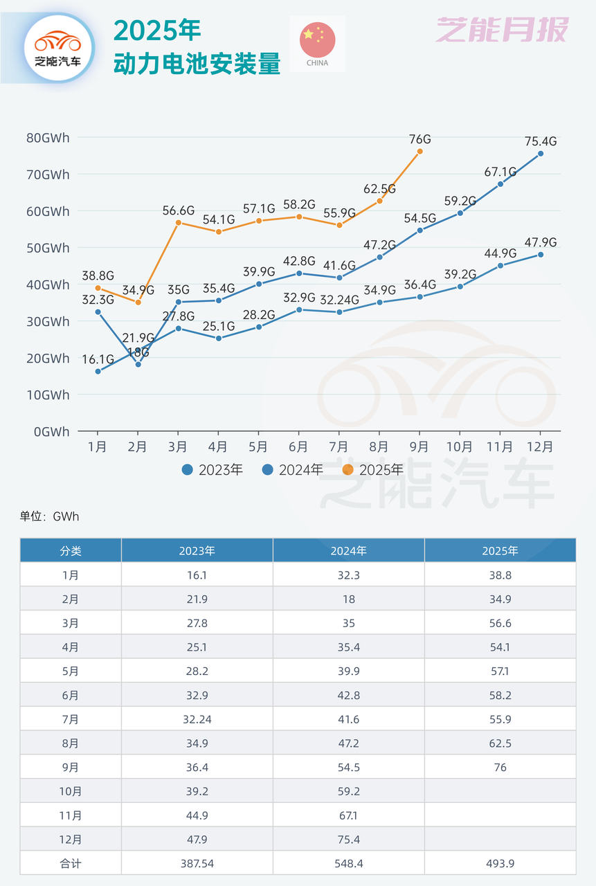 9月电池产量为151.2GWh,销量为146.5GWh,出口26.7GWh,在国内的动力电池安装量为76.0GWh。