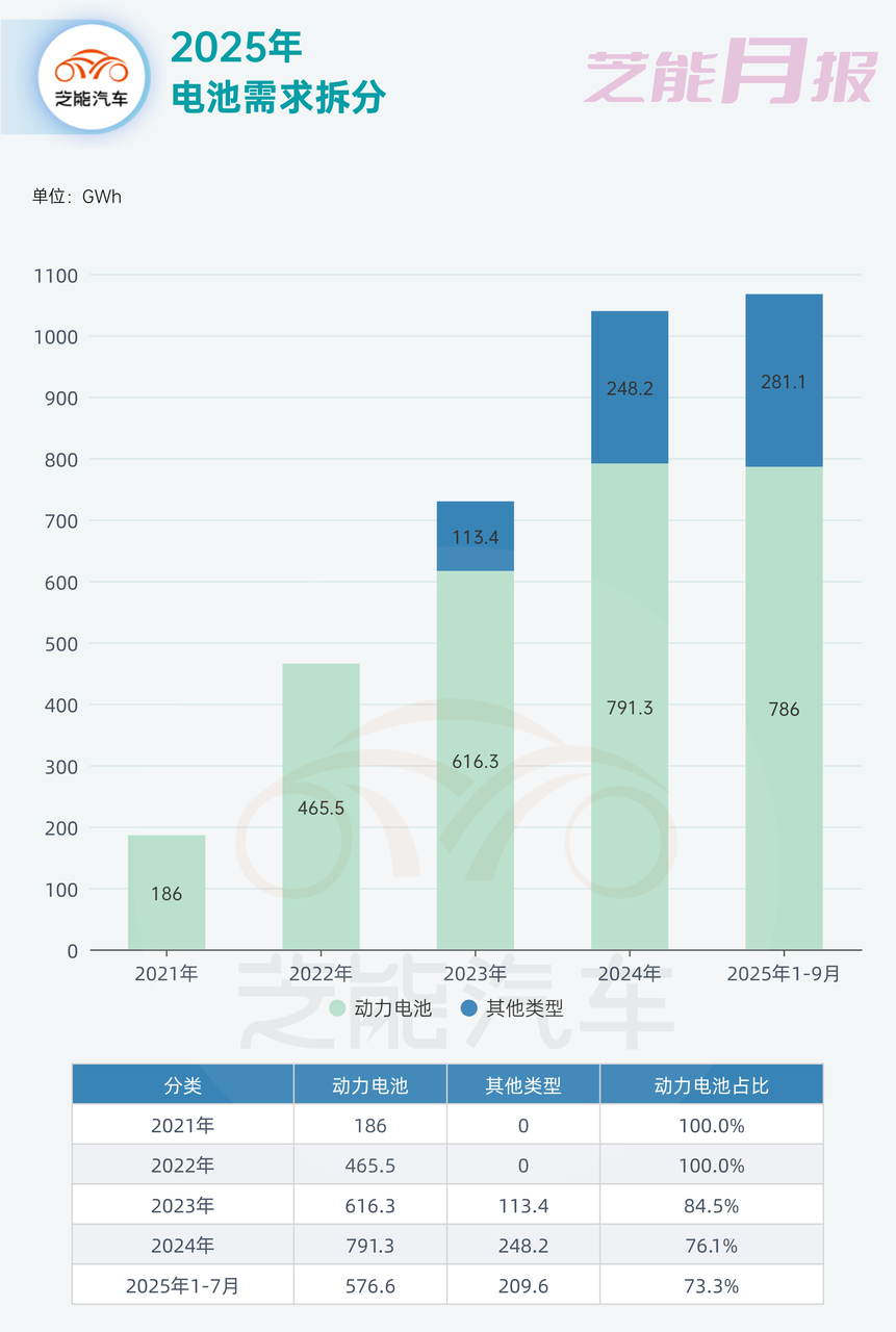 ◎累计销量也突破1Twh,为1067.2GWh,累计同比增长55.8%,动力电池累计销量为786.0GWh,占73.7%,累计同比增长48.9%;其他电池累计销量为281.1GWh,占26.3%,累计同比增长78.9%。储能这块的需求确实是在持续放大的。