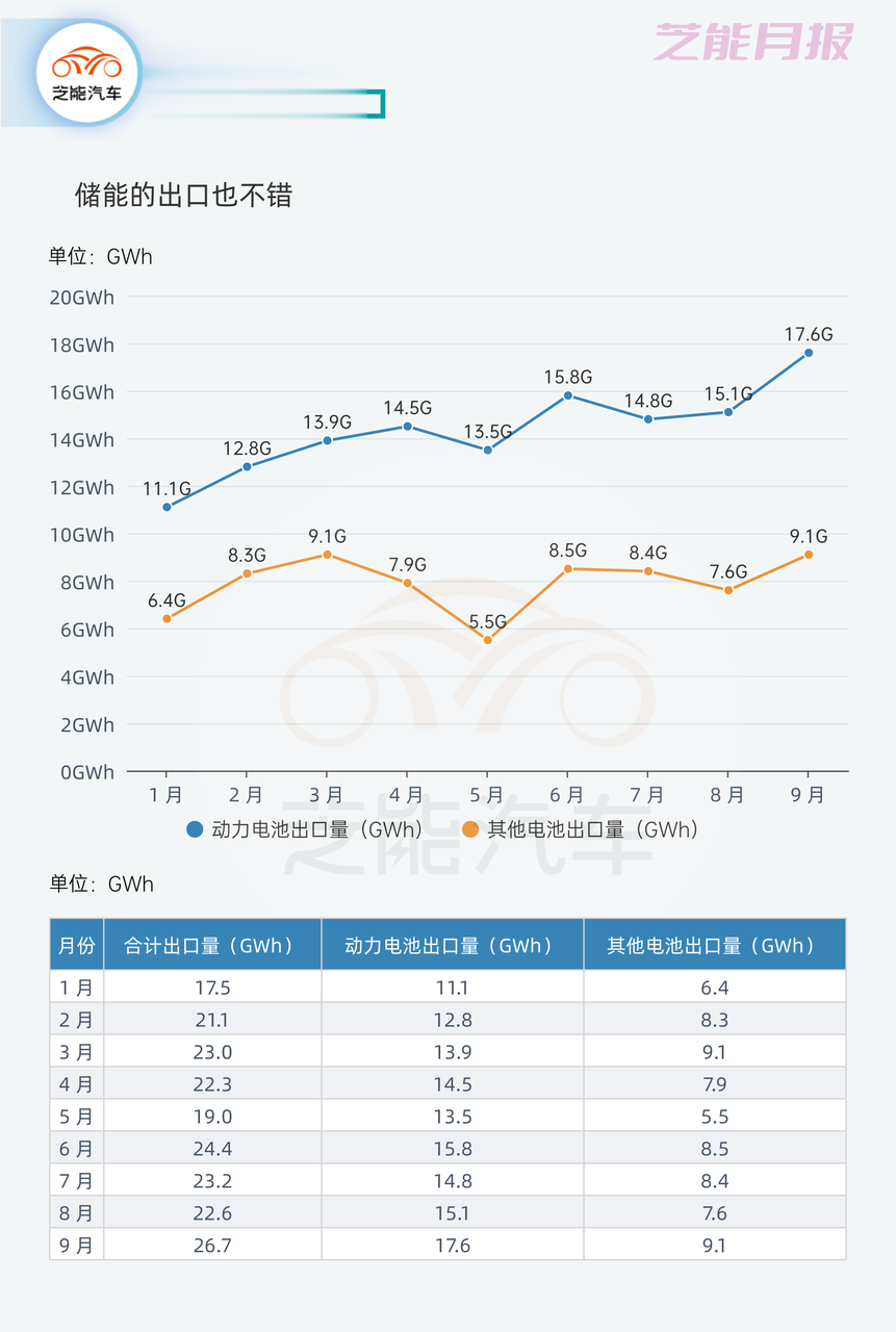 ◎9月,电池合计出口26.7GWh,同比增长28.3%,已经占当月销量18.2%(还没有突破2成)。