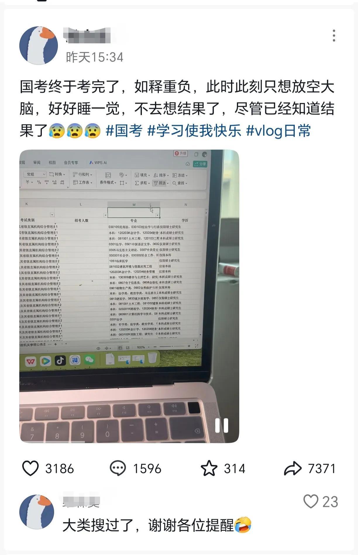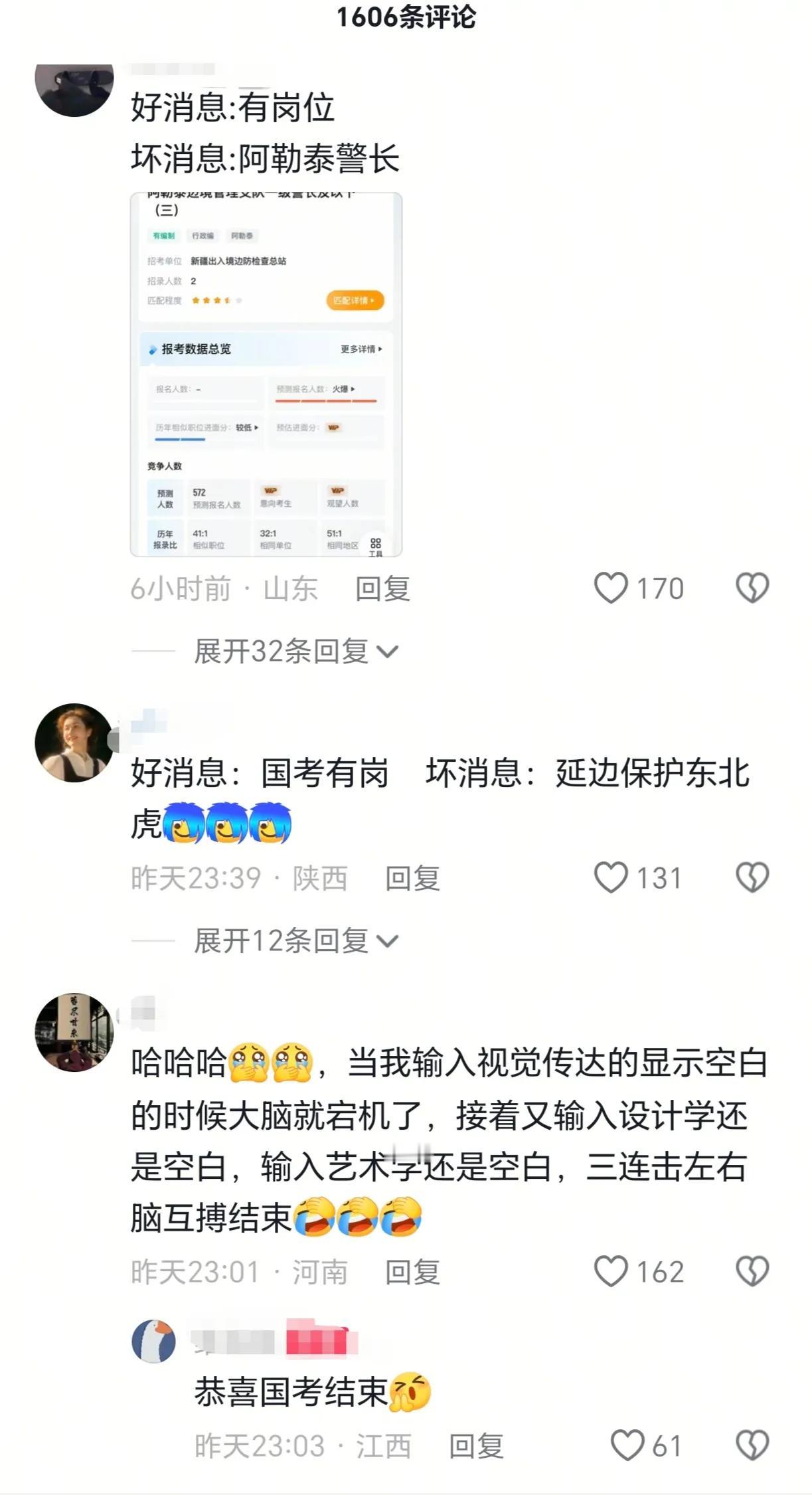 国考开始报名了,好消息是年龄往后调整了,限制在38岁。坏消息是基本上都限应届生。这下往届生的天塌了,本来想着全职备考国考,谁想着没岗。虽然年龄放宽了,但似乎对往届生没啥大用,没有岗位也都是白搭。而且今年报考学历放宽至大专,往年基本上都要求至少本科学历,但招录人数却比往年少了,这下也更卷了。 辛苦全职备考,却没岗,这种无力感,也是很扎心了。国考 国考岗位限制