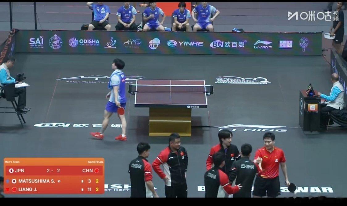 干的漂亮!!决胜局梁靖崑3:2战胜日本对手松岛辉空,中国队总比分逆转日本队获胜,挺进决赛。[good][good][good][good][good] ​​​